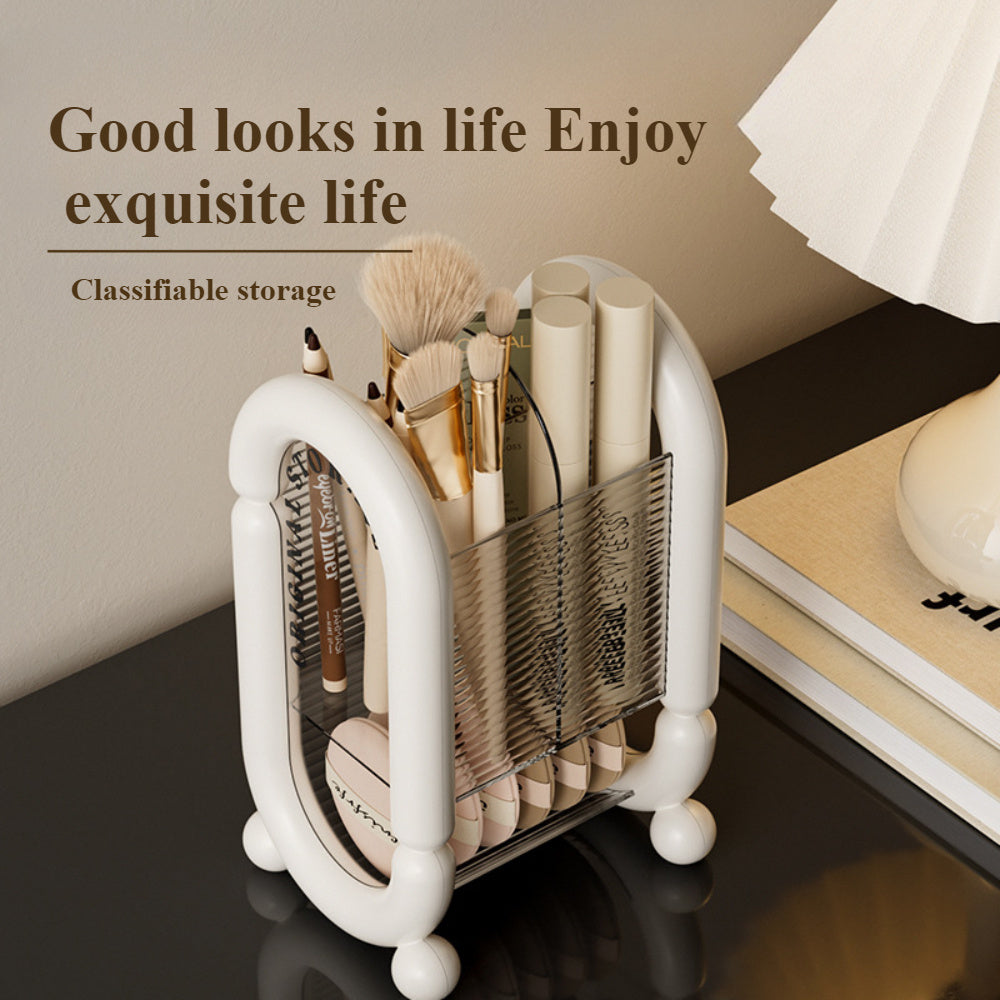 1-11pcs Makeup Brush Storage Box - Premium Cosmetic Organizer with Large Capacity, Lightweight Plastic Design, Freestanding Desktop Lipstick Holder Rack for Beauty Essentials, Beauty Essentials Organizer|Elegant White & Black Design|Durable Plastic Mater