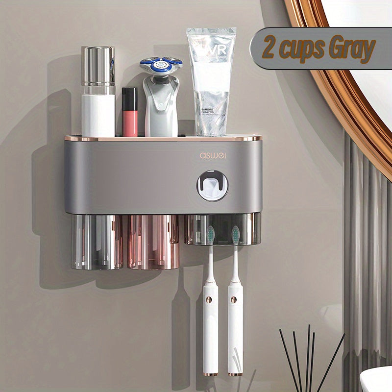Convenient and hygienic: Keep your toothbrushes and toothpaste organized and easily accessible with this wall-mounted set that includes a gargle cup and automatic toothpaste dispenser.