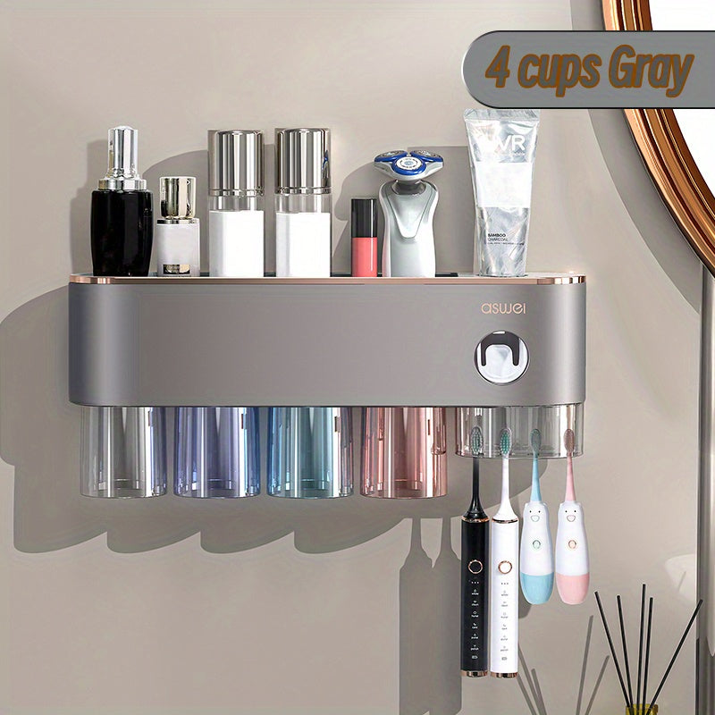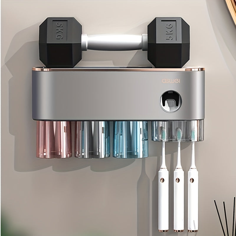 1 Set Of Bathroom Accessories Family Combination Wash Cup Set Free Of Punching Installation Stainless Steel Toothbrush Holder With Automatic Toothpaste Dispenser