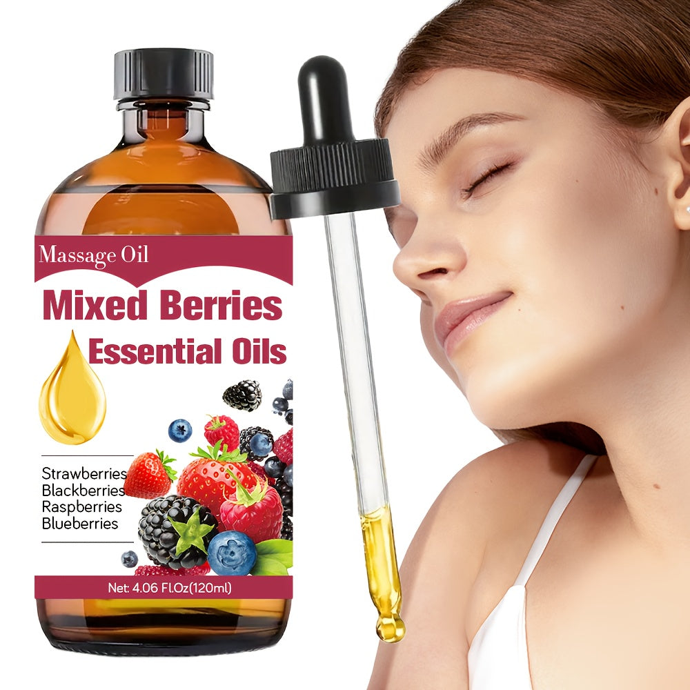 120ml/4.06fl.oz Mixed Berries Essential Oil - with Strawberries, Blackberries, Blueberries - 100% Pure Perfume Oil Care Grade for Hair & Skin Care, Massage, Diffusers Humidifier, Natural Smell, for Men & Women, Meditation, Fragrance Oil