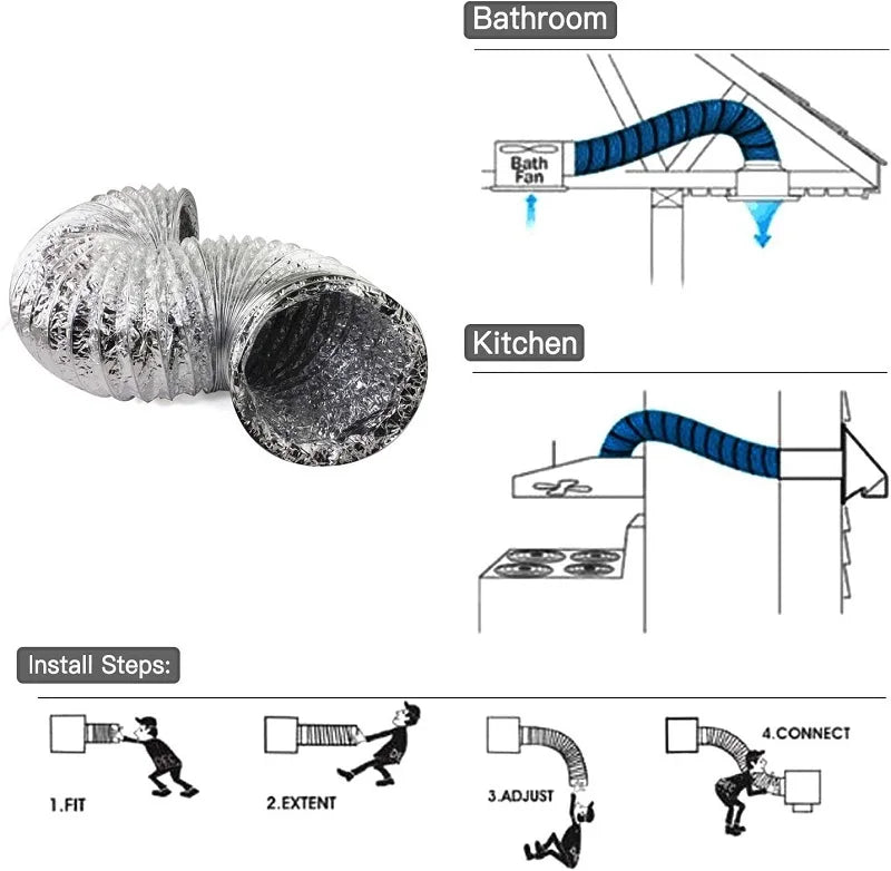 ∅150mm Double Layer Aluminum Foil Pipe Flexible Ventilation Duct for Kitchen Bathroom Extractor Dryer Fan Grow Tent 1.5m-6m