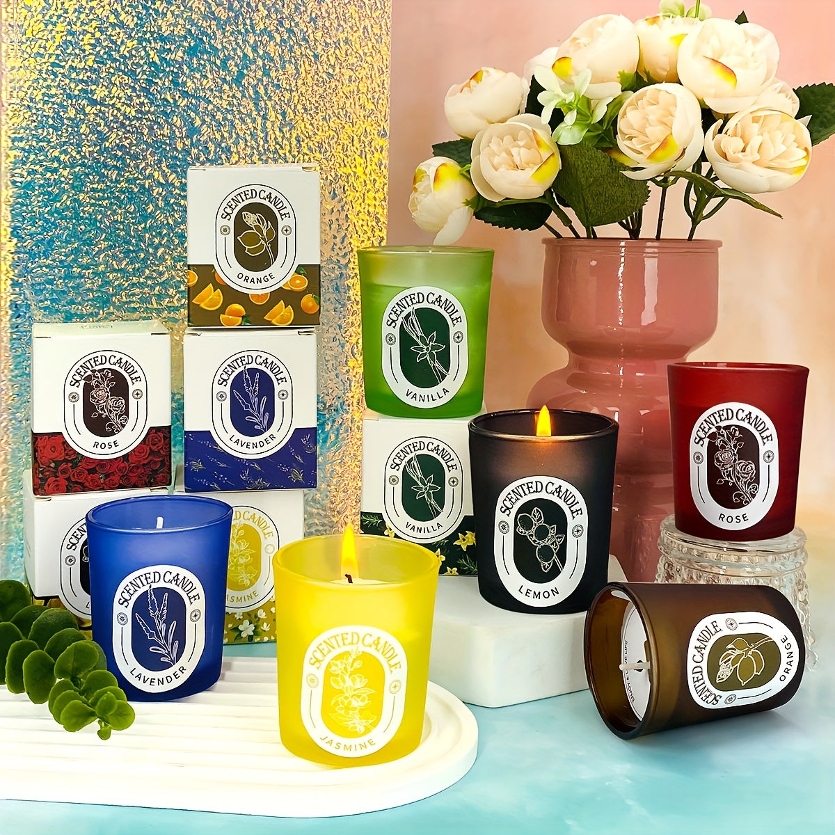 1pc Frosted Glass Scented Candle with Natural Soy Wax, Rich Rose Lavender Lemon and Smoky Vanilla Fragrance, Home Decor Gift for Family Gatherings, Dinner Spa, Women'S Gifts, Holiday Parties, Festive Atmosphere Decoration