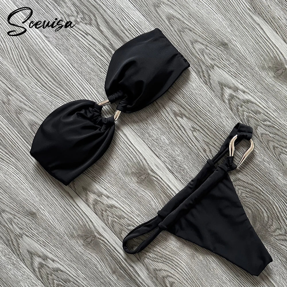 2024 New Sexy Bandeau Bikini Women Swimsuit Female Swimwear High Cut Set Swimming Suit Beachwear Patchwork Brazilian biquini