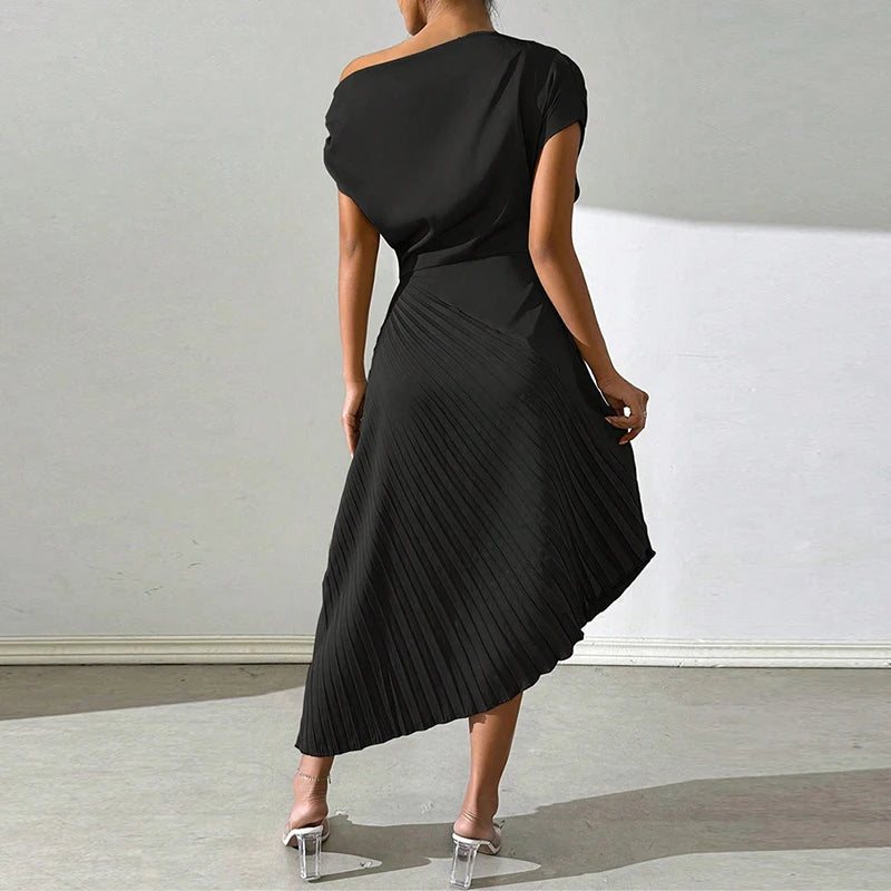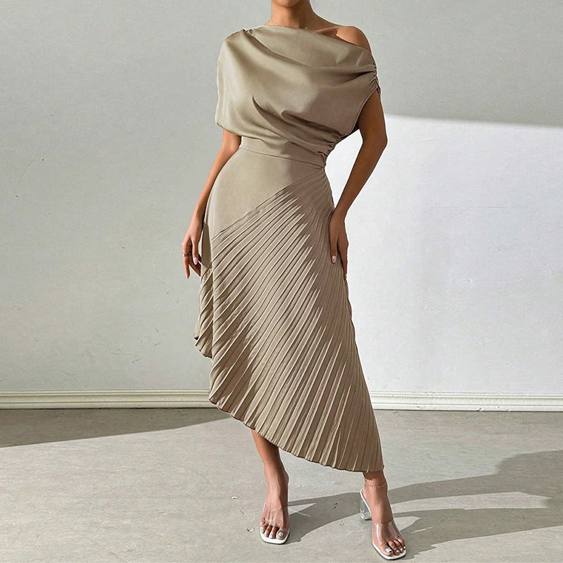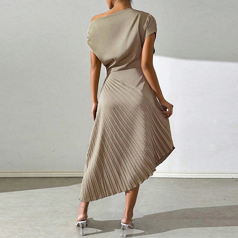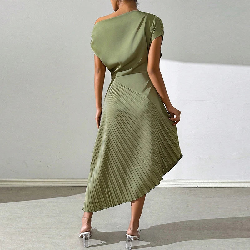 2024 Sexy Irregular Slim Club Party Dress Spring Summer Satin Solid Color Women's Dress Casual Short Sleeved Pleated Long Dress