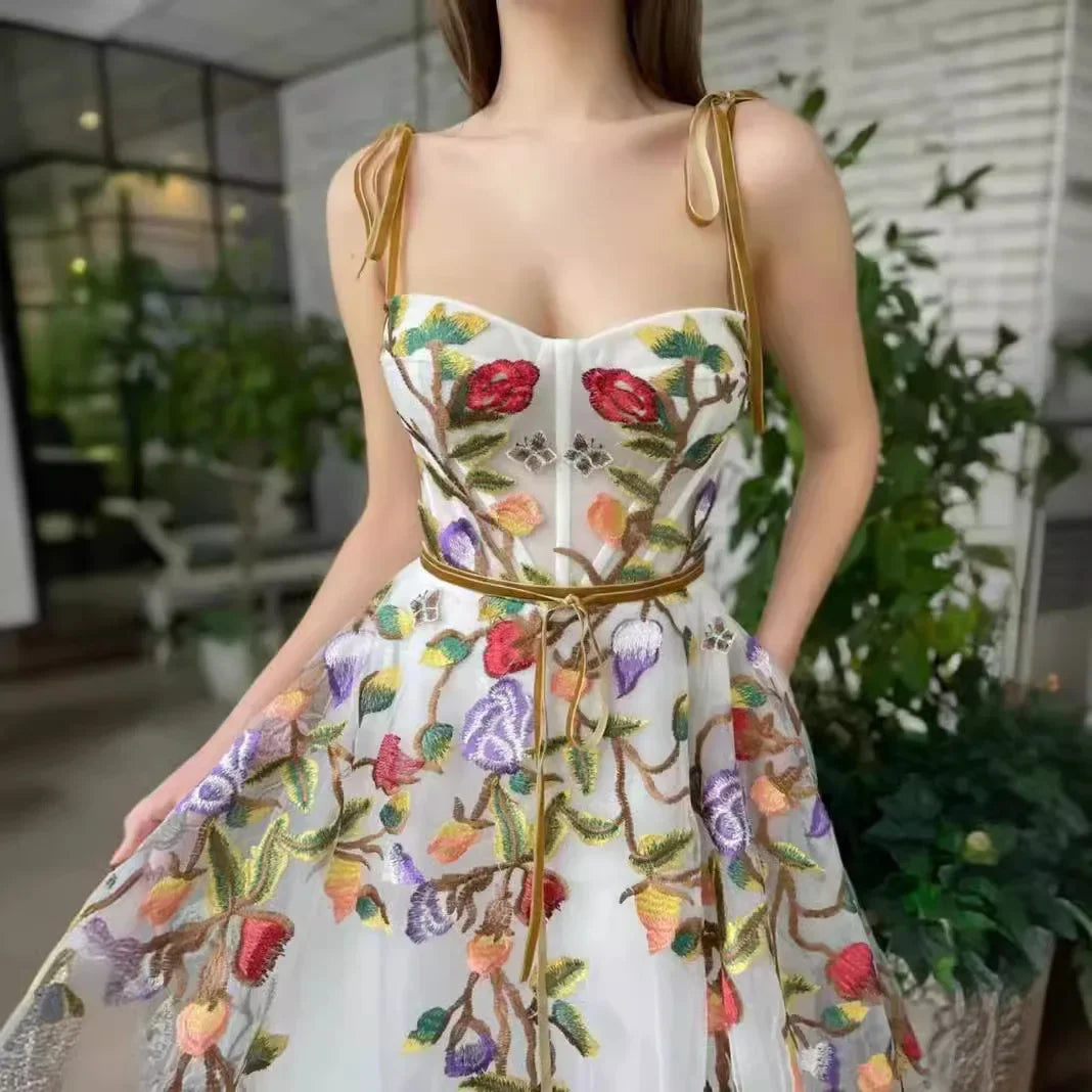 2025 New Cross-Border Women's Clothing Dress Off-Shoulder Strapless Embroidered Elegant Slimming Mesh Long Dress
