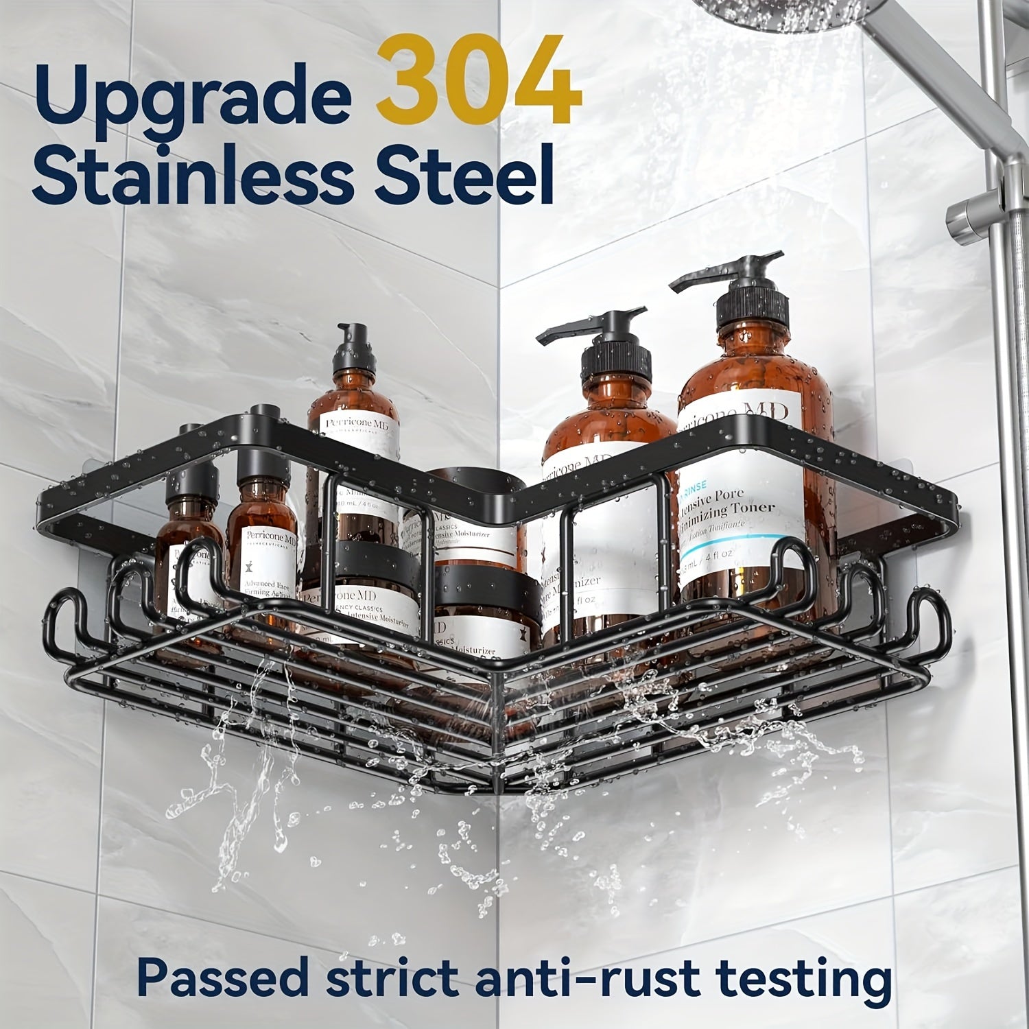3-in-1 Design, 5-Tier Stainless Steel Shower Organizer with Soap Dish - Wall-Mounted, Corner Shelf for Bathroom, Kitchen, Countertop, 8 Hooks, 12 Hooks Option, Organizing Solution|Modern Wall Shelf|Durable Construction, Shower Organizer, Bathroom Organiz