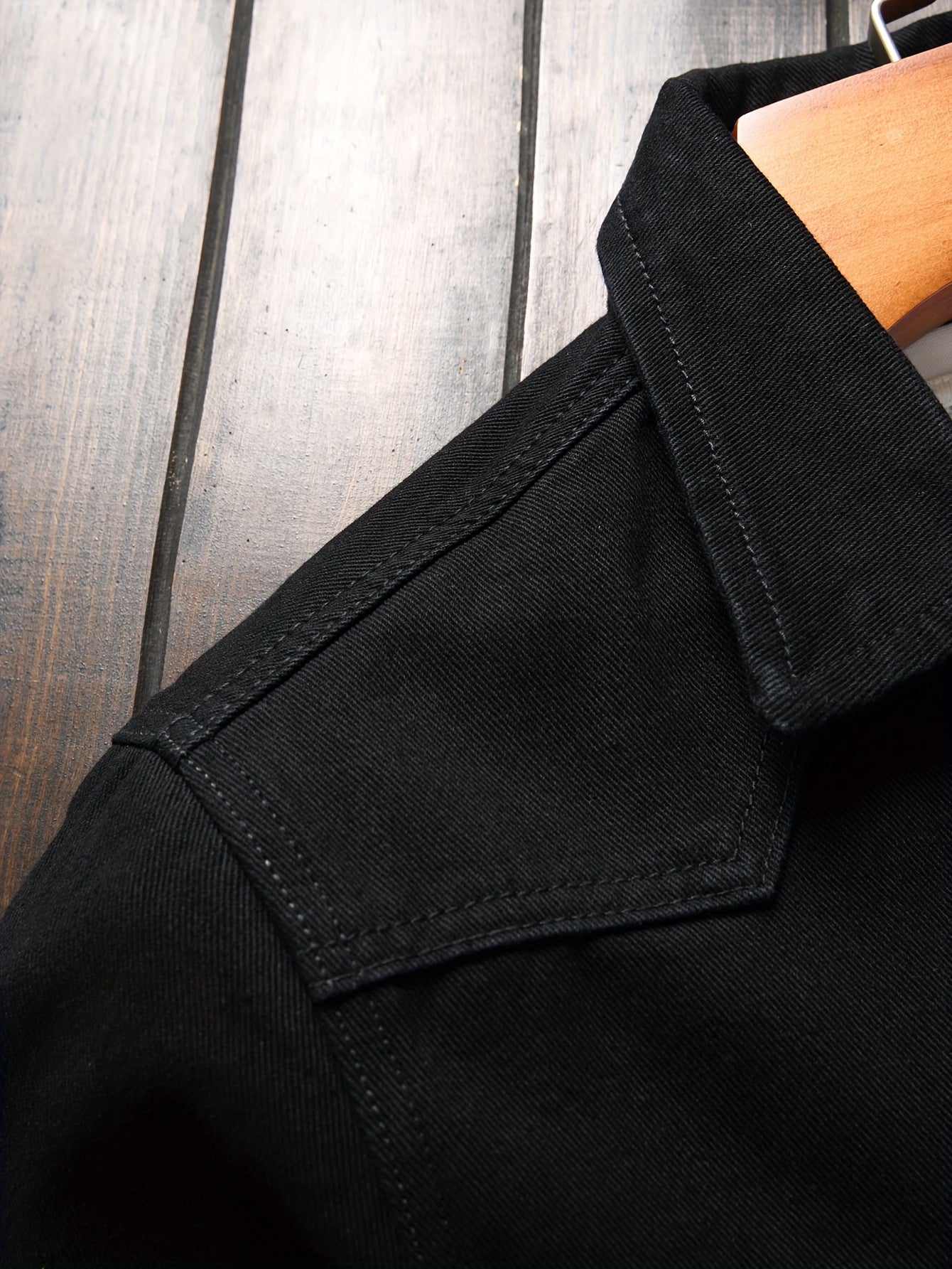 American High Fashion Badge Pocket Denim Shirt, Stylish Versatile Black Top Without Belt/Accessories