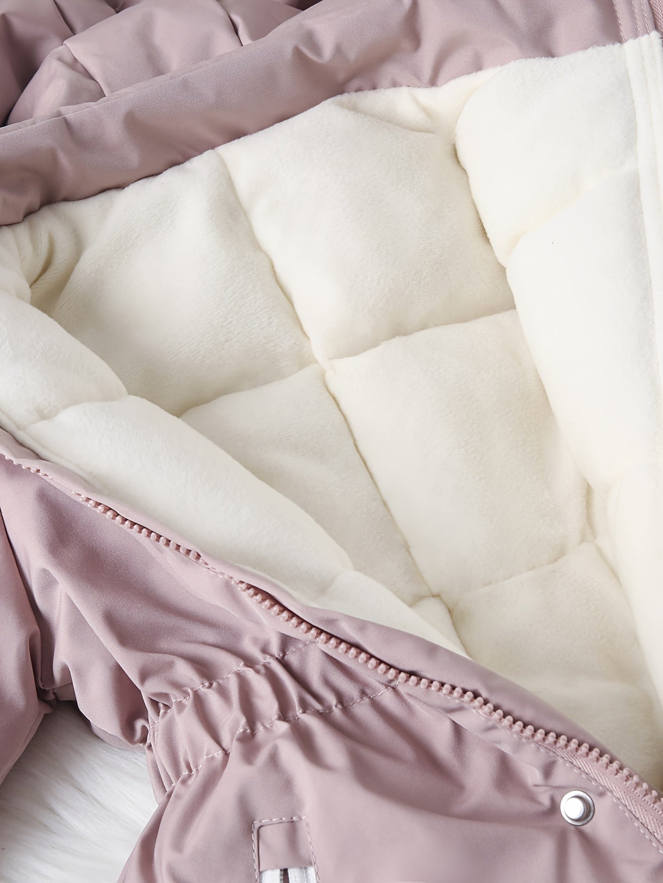Baby & Kids Winter Coat - Polyester Stand Collar Zipper Front, Thick Insulated Long Sleeve Jumpsuit with Pockets, Solid Color Casual Outfit for Boys & Girls 1-5 Years, Toddler Winter Clothes, Easy Diaper Change, Cute Animal Design, Durable Snap Buttons