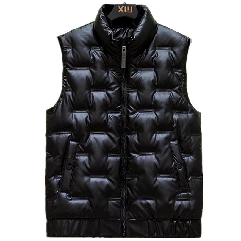 Black Men's Standing Collar Sleeveless Vest Coat, Winter Fashion Casual Waterproof Thick Jacket,Silver Windproof Waistcoat