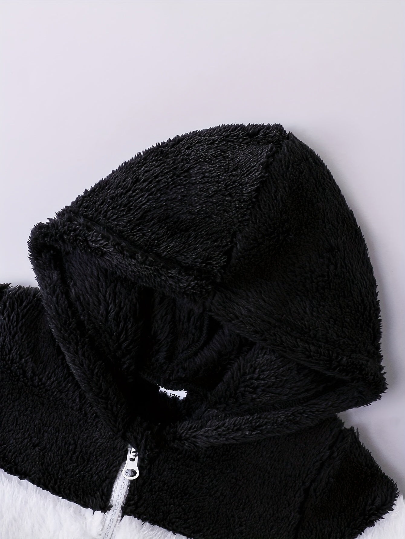 Boys' Autumn and Winter New Double-Sided Polar Fleece Thickened Zip-Up Hoodie, Color Block Patchwork and Crossbody Bag Style Fashion Jacket, Soft and Comfortable Fabric, Trendy Cool Style Boys' Autumn and Winter Thickened Warm Clothing, Suitable for Outd