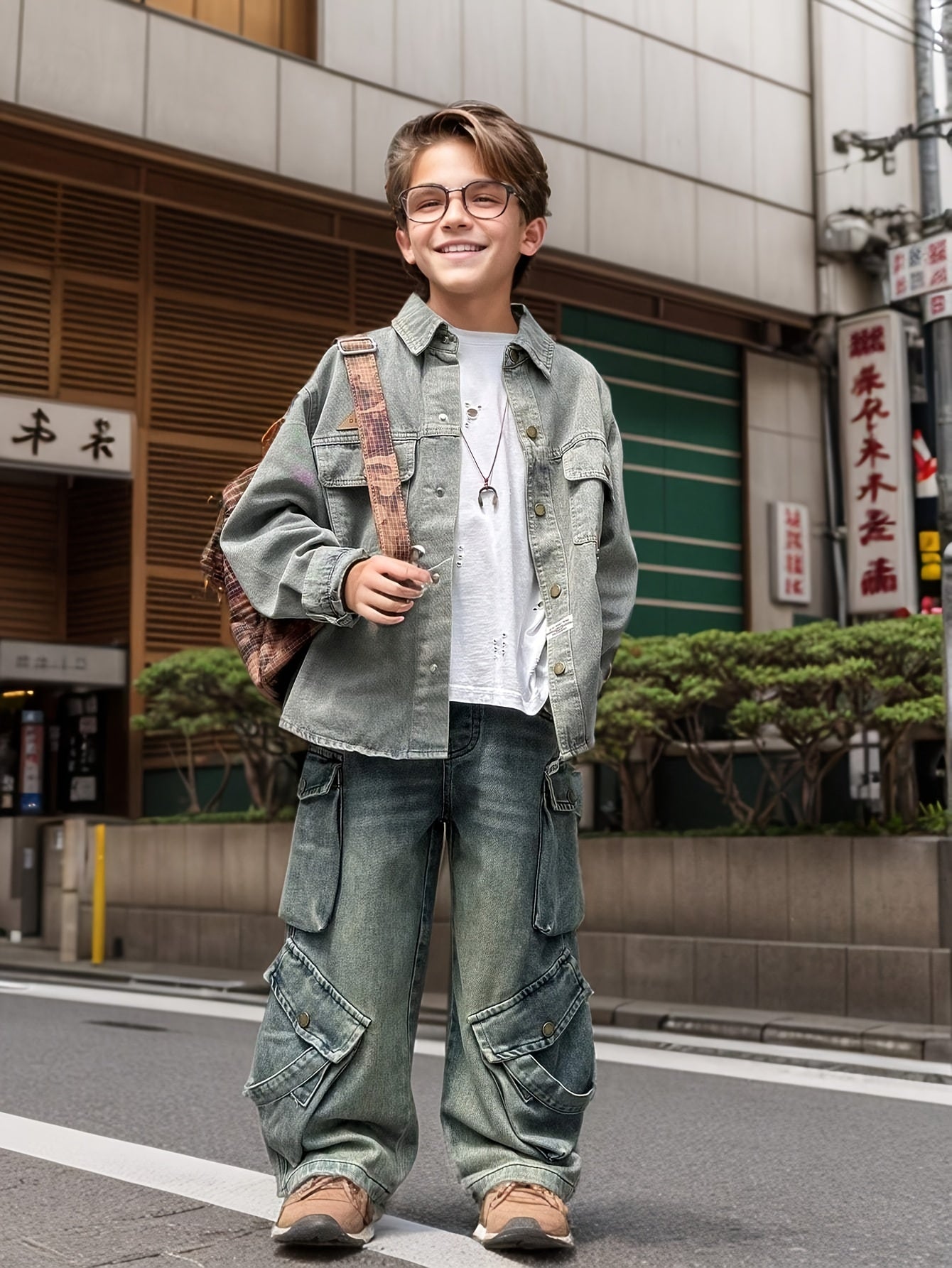Boys' Autumn Loose Fit Denim Jacket and Cargo Jeans Set for Daily, School, Casual, and Outdoor Wear, Perfect for Outdoor
