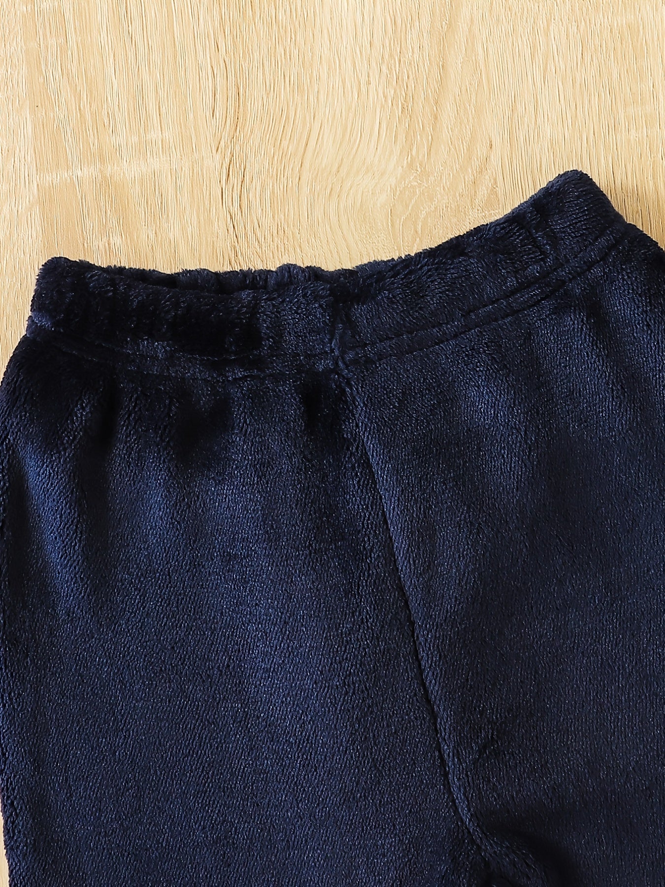 Boy's Cartoon Cat Pattern Long Sleeve Crew Neck Warm Fleece Top & Pants, Cute Warm Set