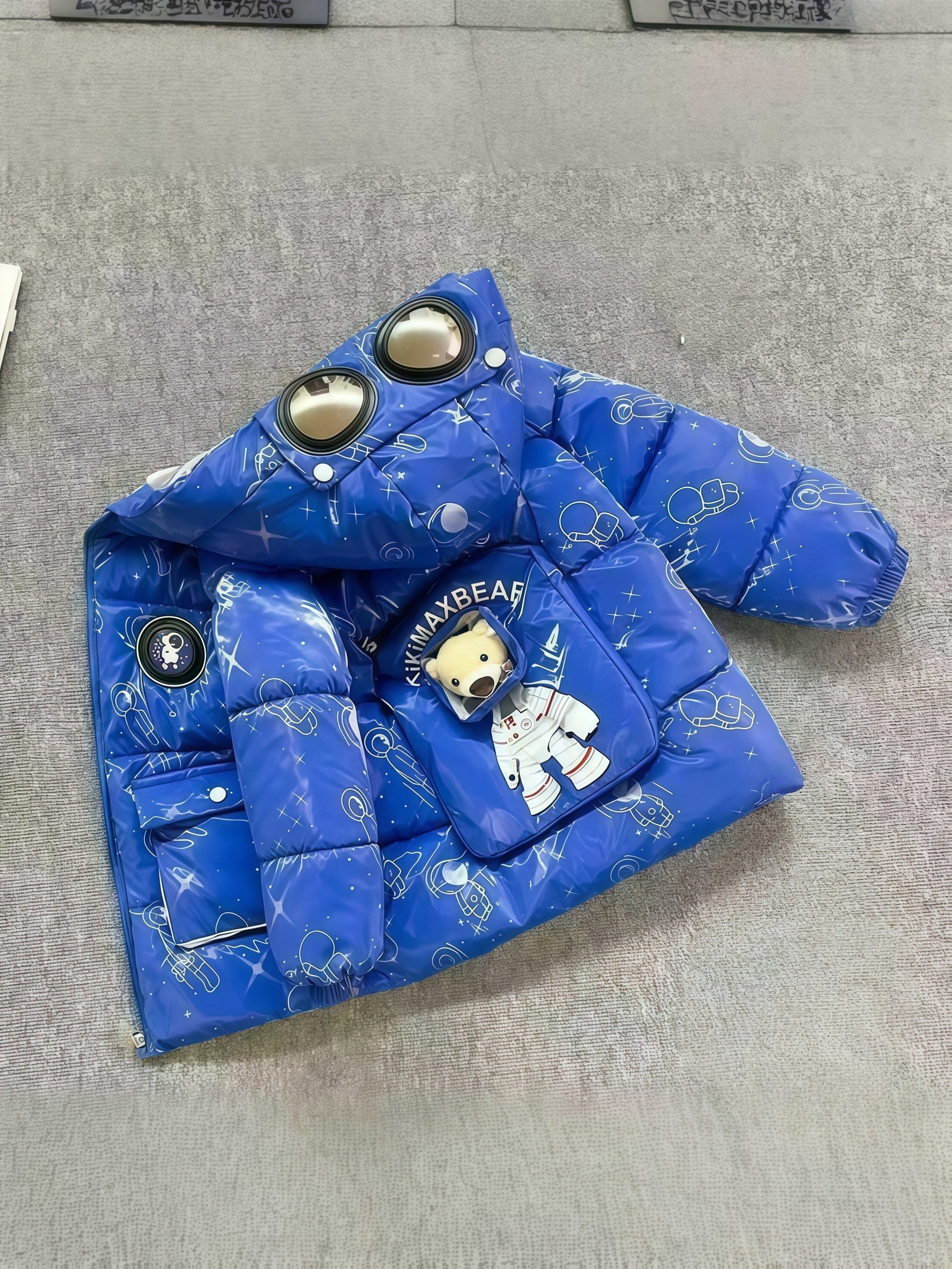 Boys' & Girls' Winter Hooded Jacket with Bear & Glasses Design - Warm Fleece-Lined Zip-Up Coat, Loose Fit Casual Outerwear for Ages 3-10, Perfect for Halloween, Thanksgiving, Christmas Gifts, Winter Coat, Playful Kids' Fashion, Durable Kids' Clothin