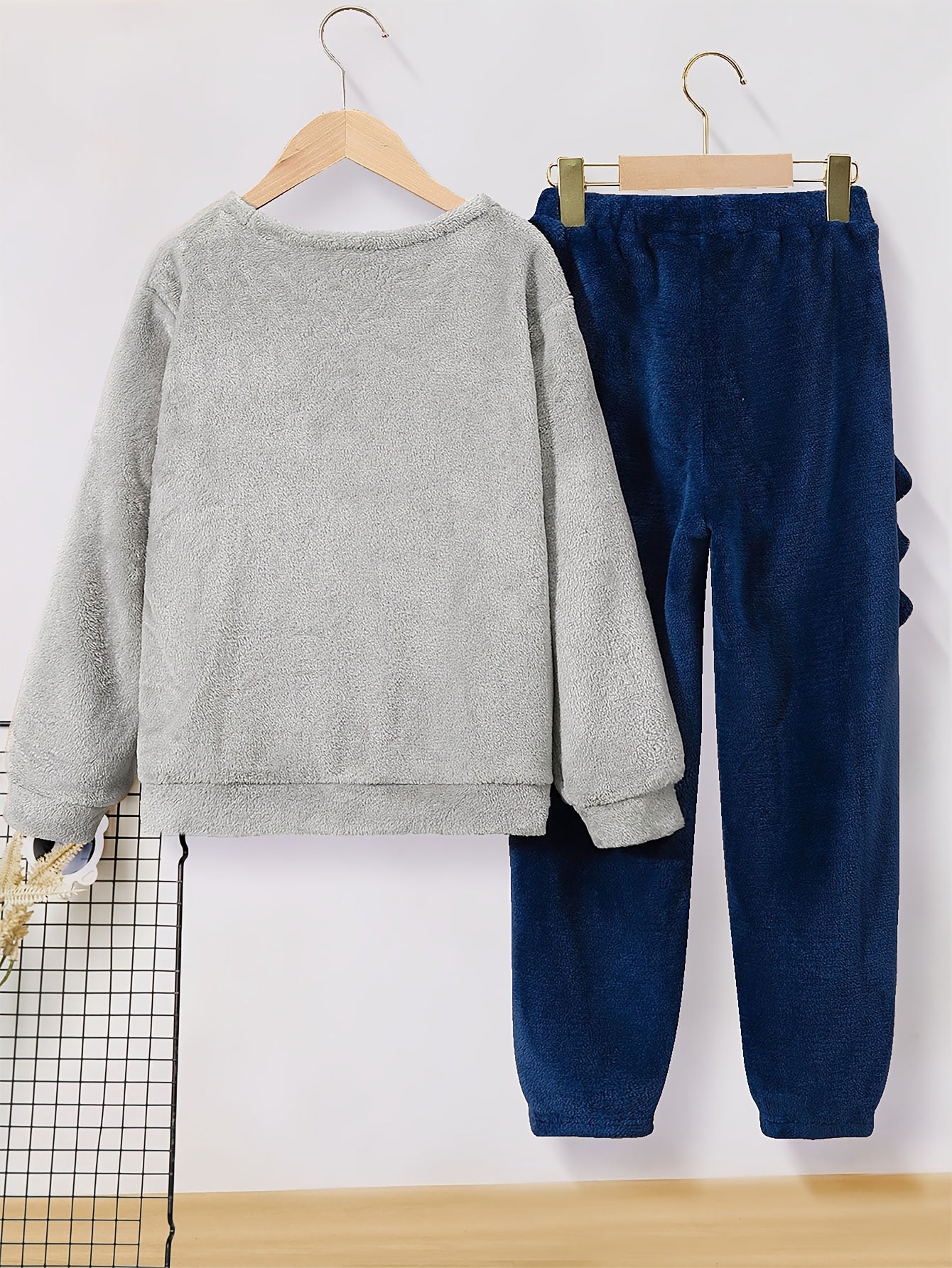 Boys' Plush Cartoon Dinosaur Print Autumn/Winter Casual Two-Piece Set, Perfect for Outdoor