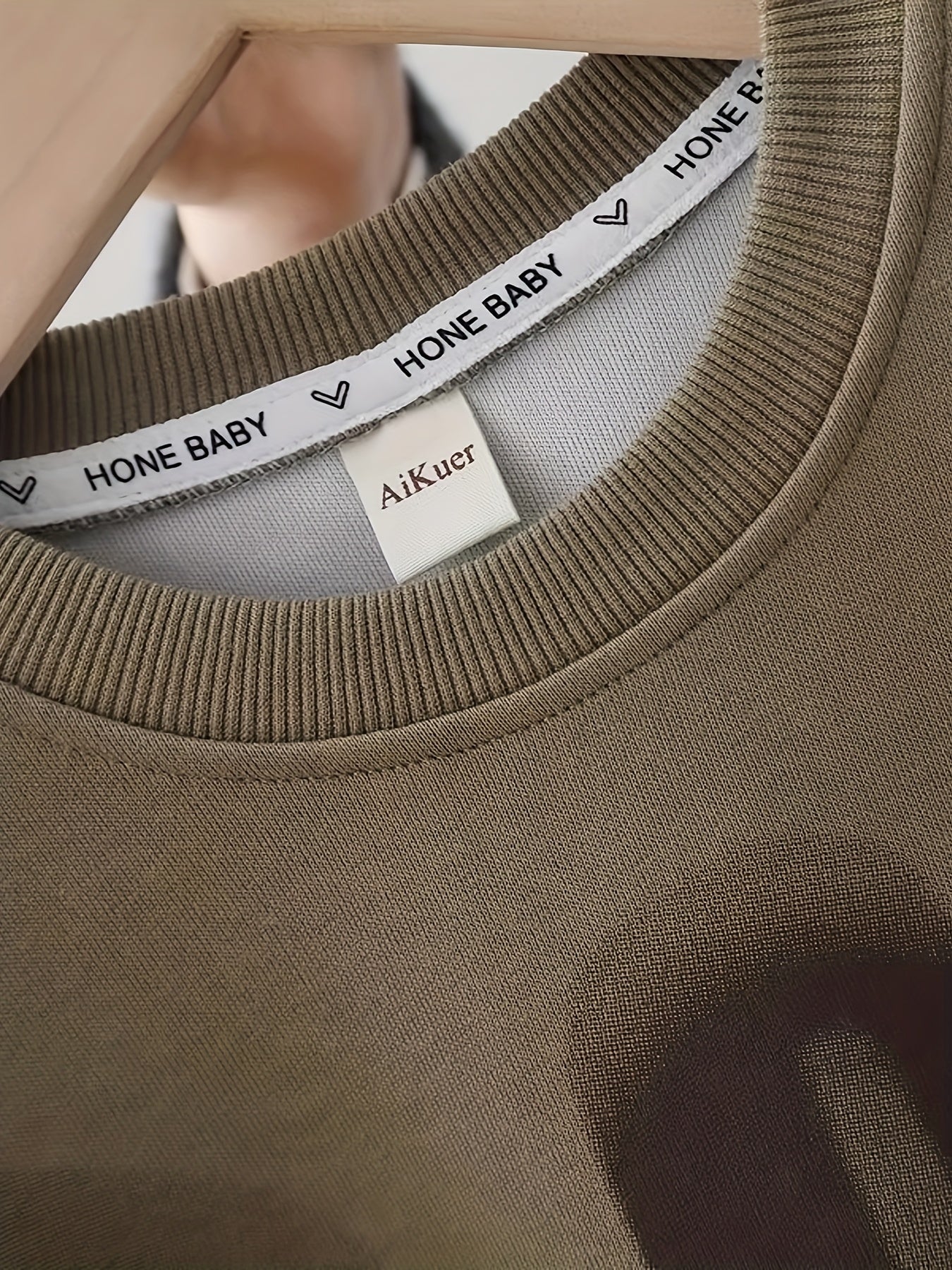 Boys' Trendy 2pcs Set | Faux Layered Crewneck Pullover with "BRO" Graphic + Light Wash Faux Denim | Cool Spring/Fall Outfit, Perfect for Outdoor