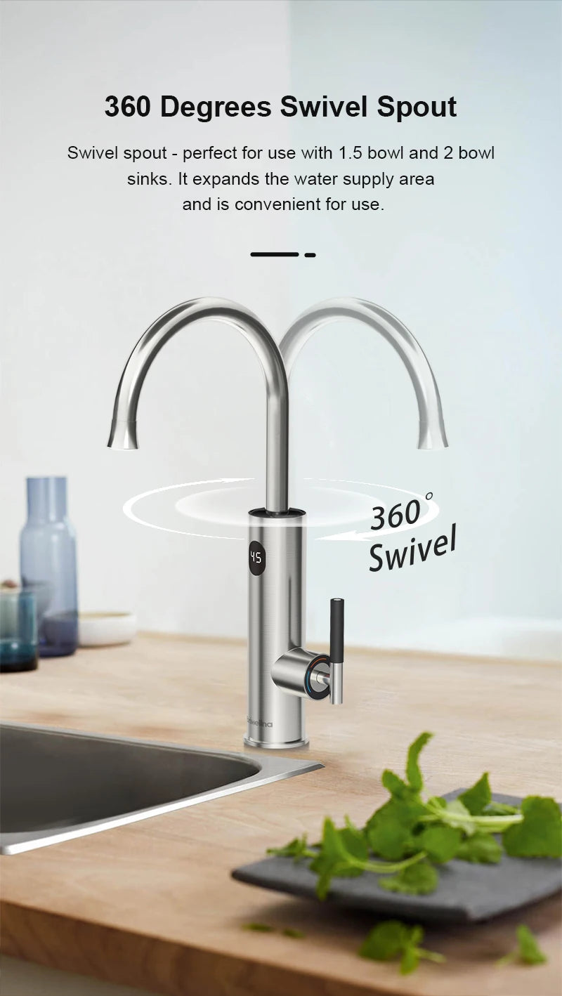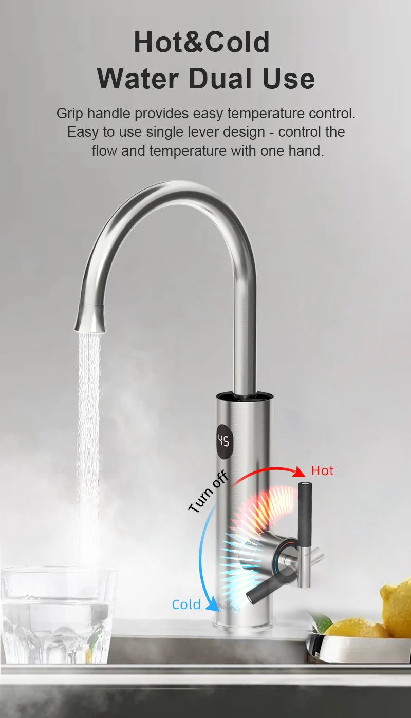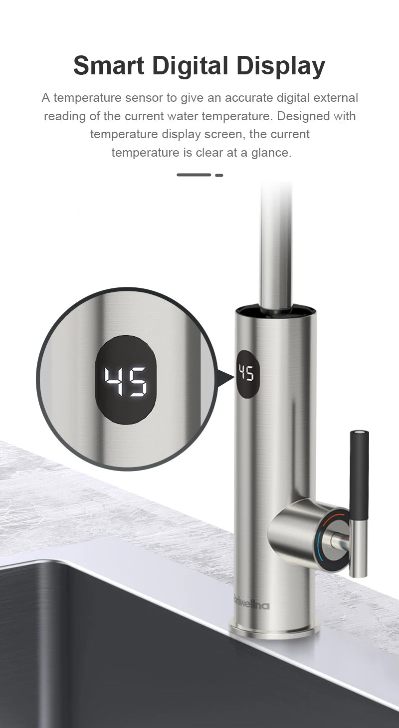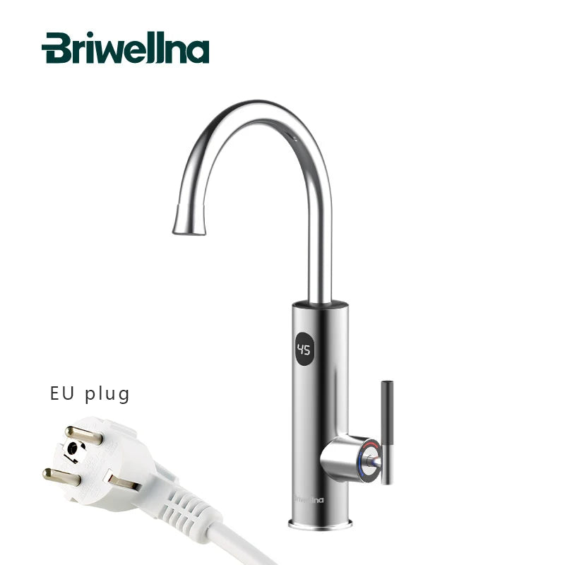Briwellna Electric Water Heater Kitchen Faucet 2 In 1 With Digital Display Stainless Steel 220V Electric Tap Geyser Robinet