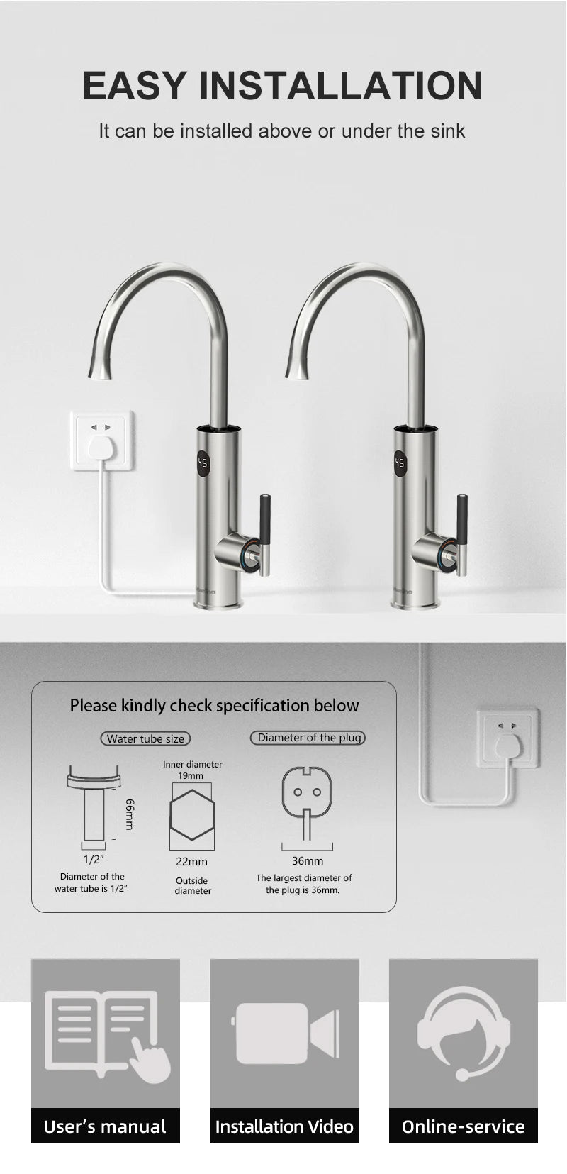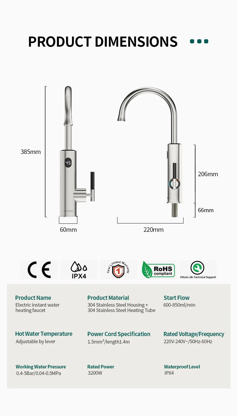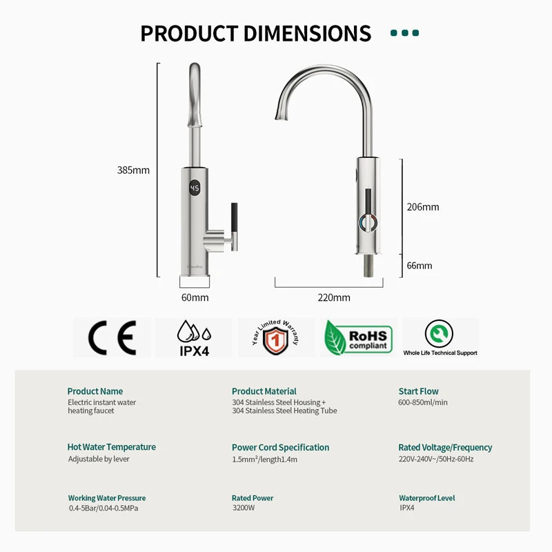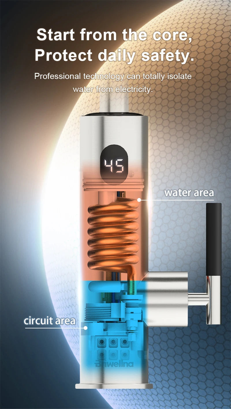 Briwellna Electric Water Heater Kitchen Faucet 2 In 1 With Digital Display Stainless Steel 220V Electric Tap Geyser Robinet