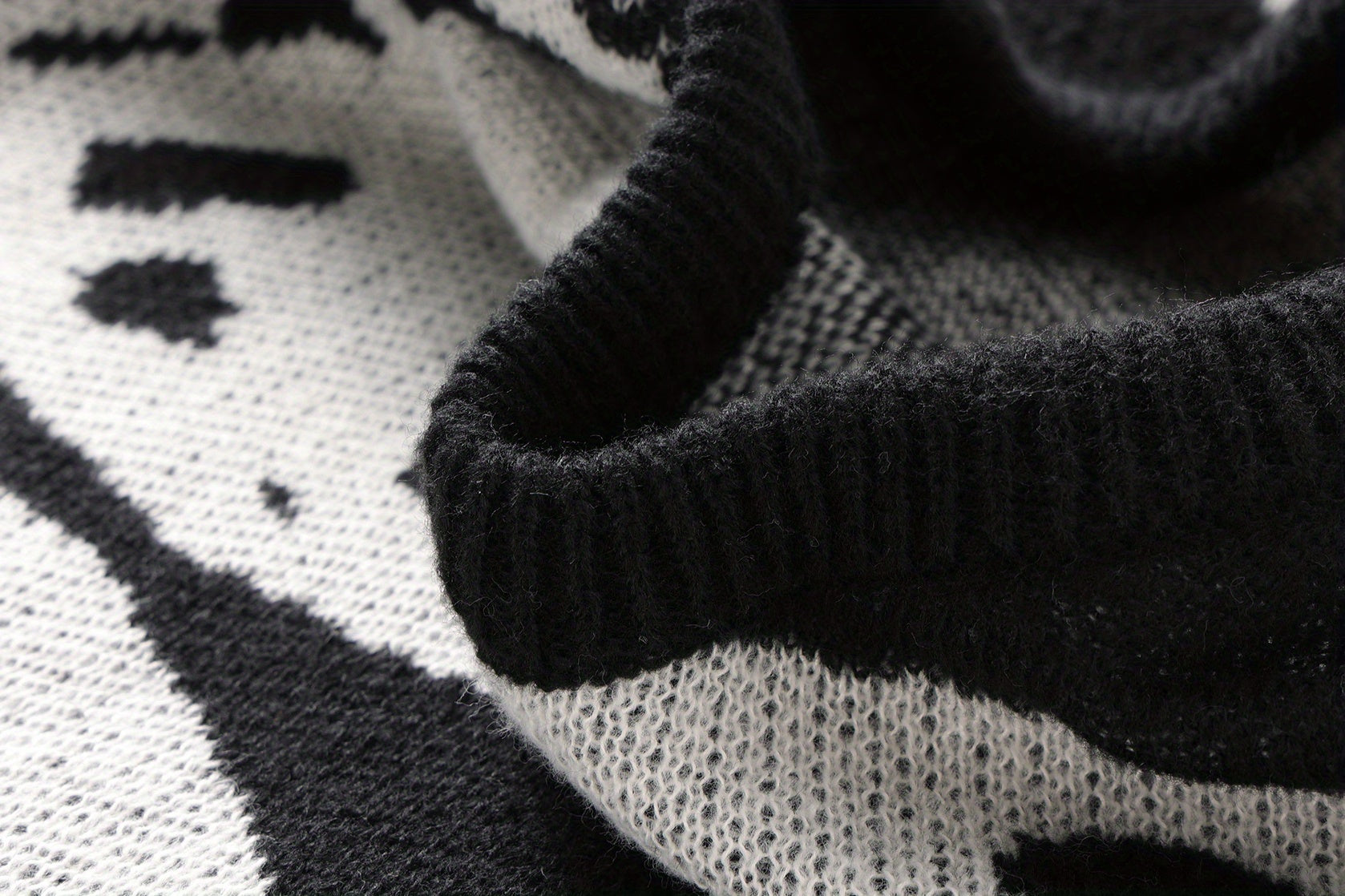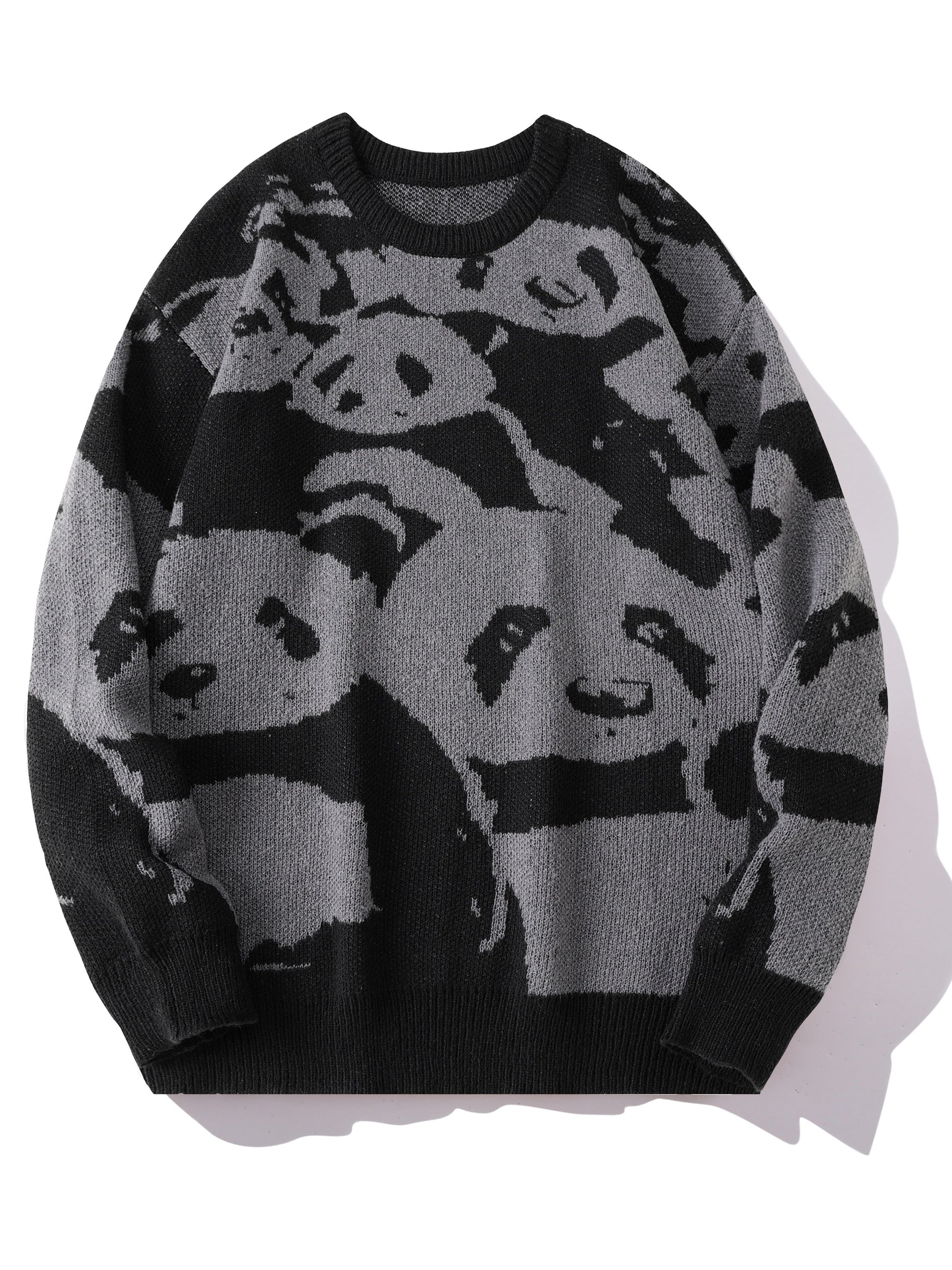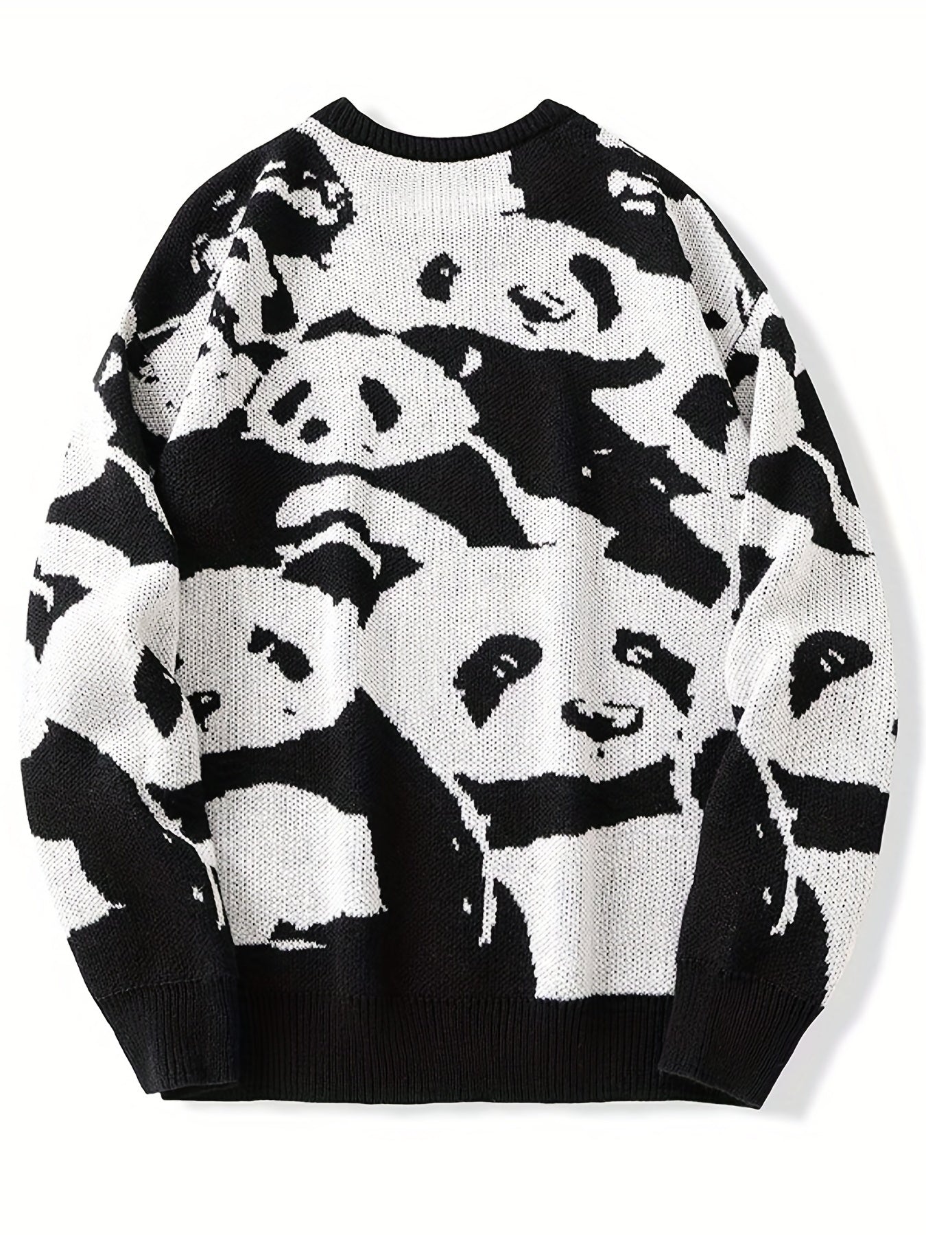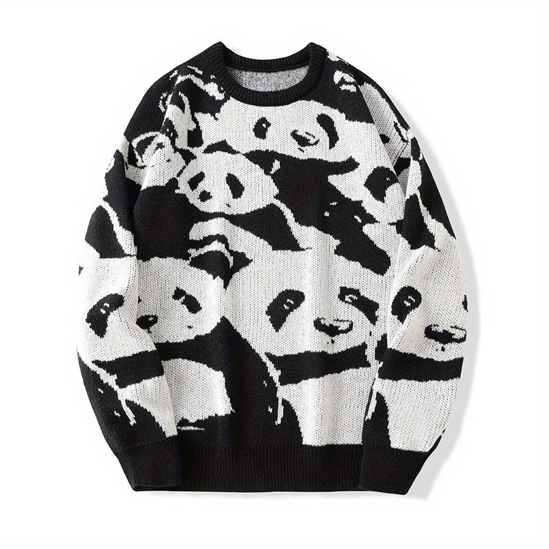 Cozy Panda Crew Neck Sweater - Novelty Cartoon Knit Pullover for Men - Warm, Slightly Stretchy, Casual Fall Winter Wear with Fun Panda Pattern