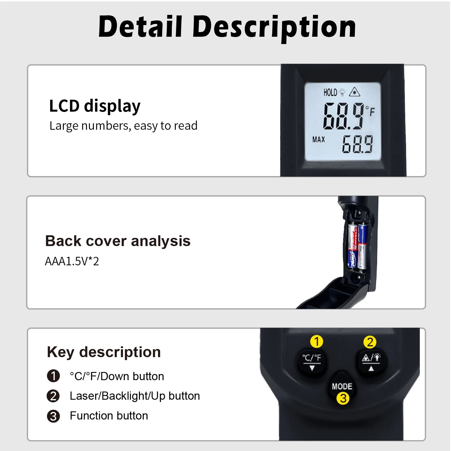 Digital Thermometer Non-contact industrial Infrared Laser LCD Color Screen Kitchen Thermometer Temperature Gun Tester-50-550