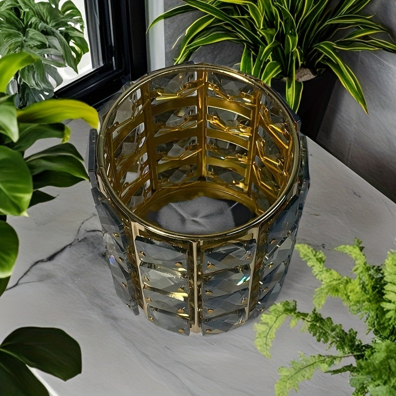 Elegant Black & Golden Crystal Cosmetic Organizer - Multi-Functional Makeup Storage Box with Durable Wrought Iron Frame, Perfect for Brushes, Nails, and Beauty Essentials, Countertop Display, Beauty Essentials Organizer | Crystal Accent Organizer | Durab