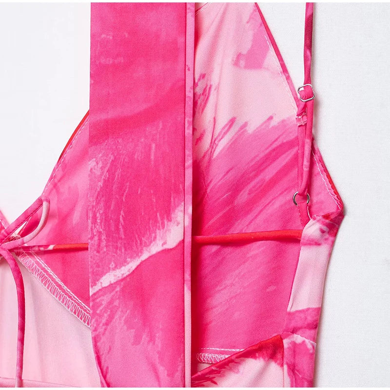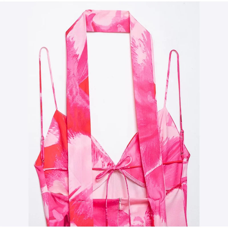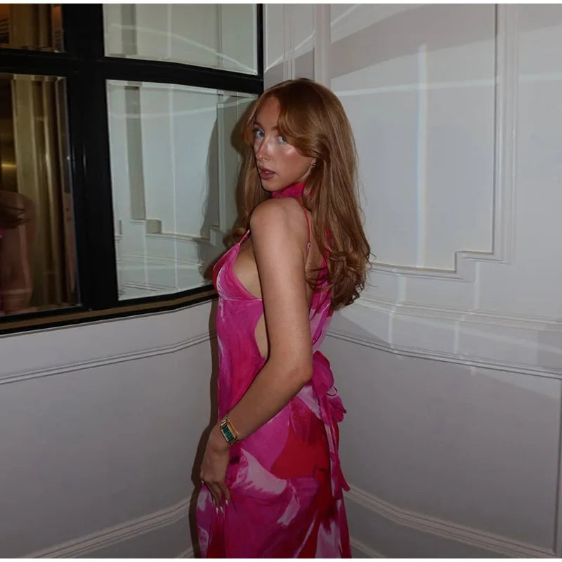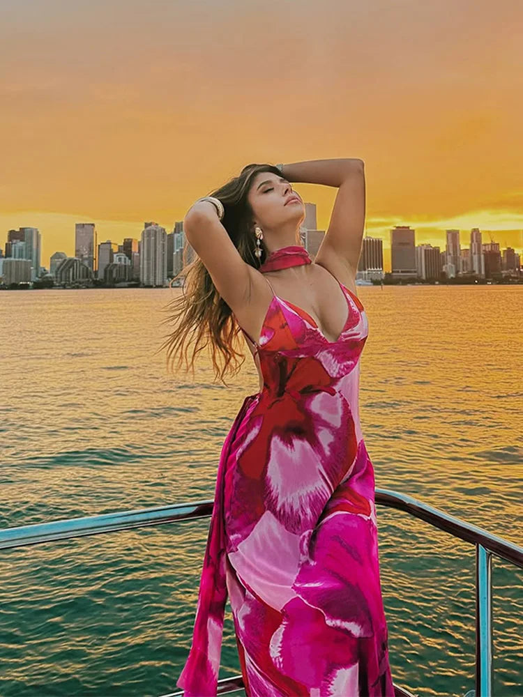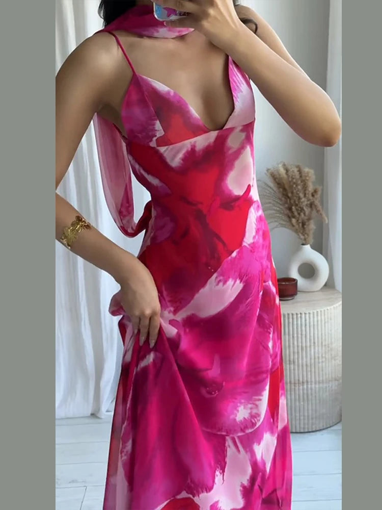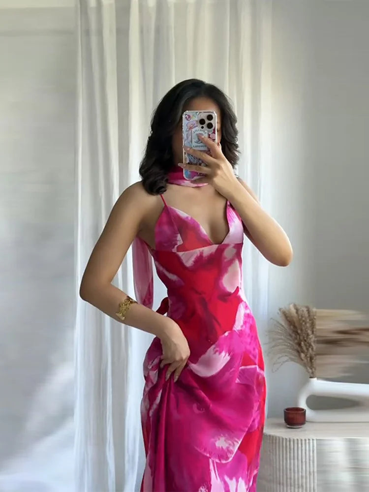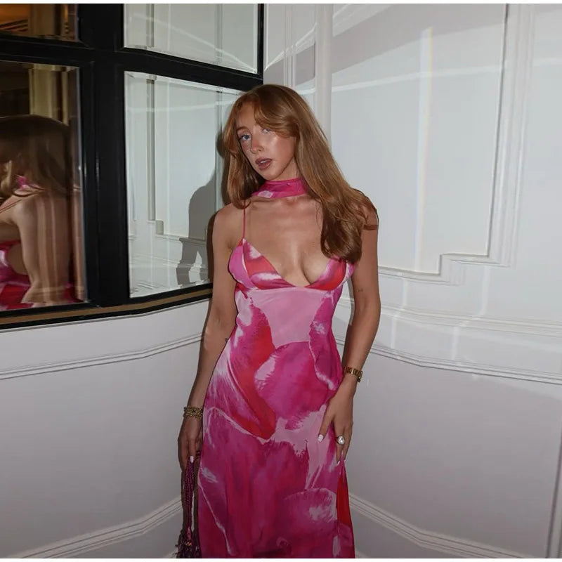 Elegant Printed Tighte Waist Women's Long Dress V-neck Slim A-line Robe 2025 Summer Beach Holiday Style Female's Long Dresses