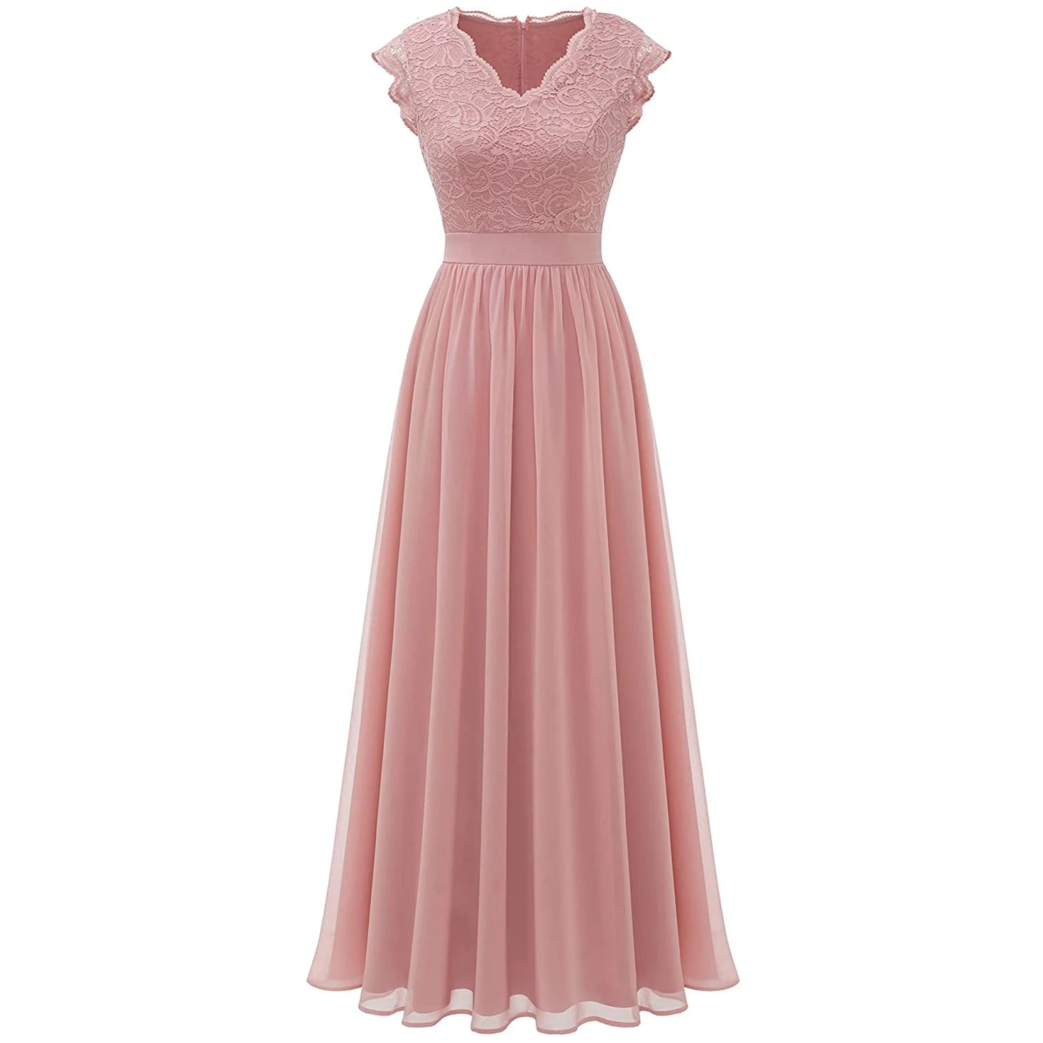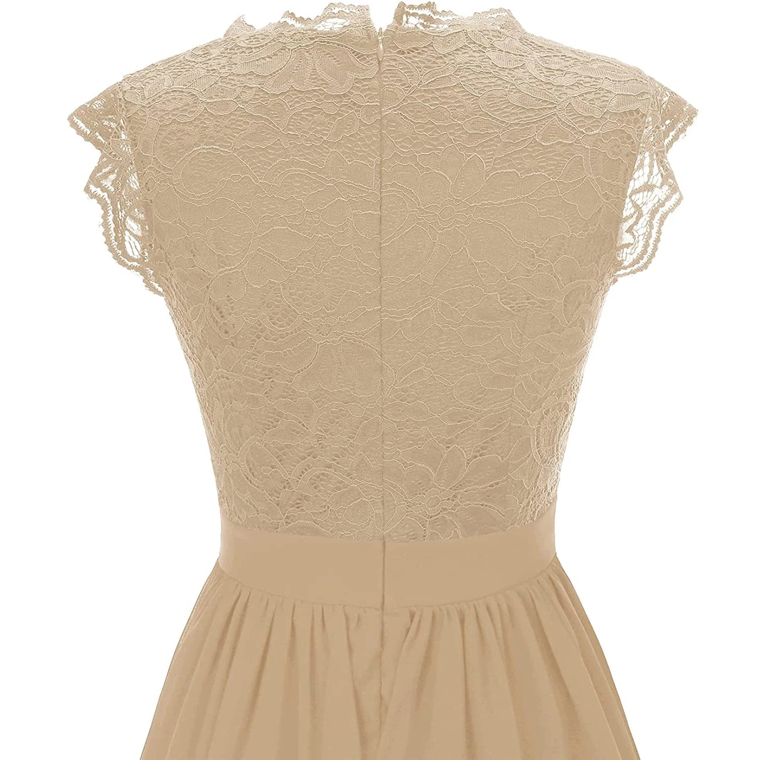 Elegant Women's Party Bridesmaid Long Dress Lace Patchwork Chiffon Sleeveless Wedding V Neck One Piece Formal Party Midi Dress