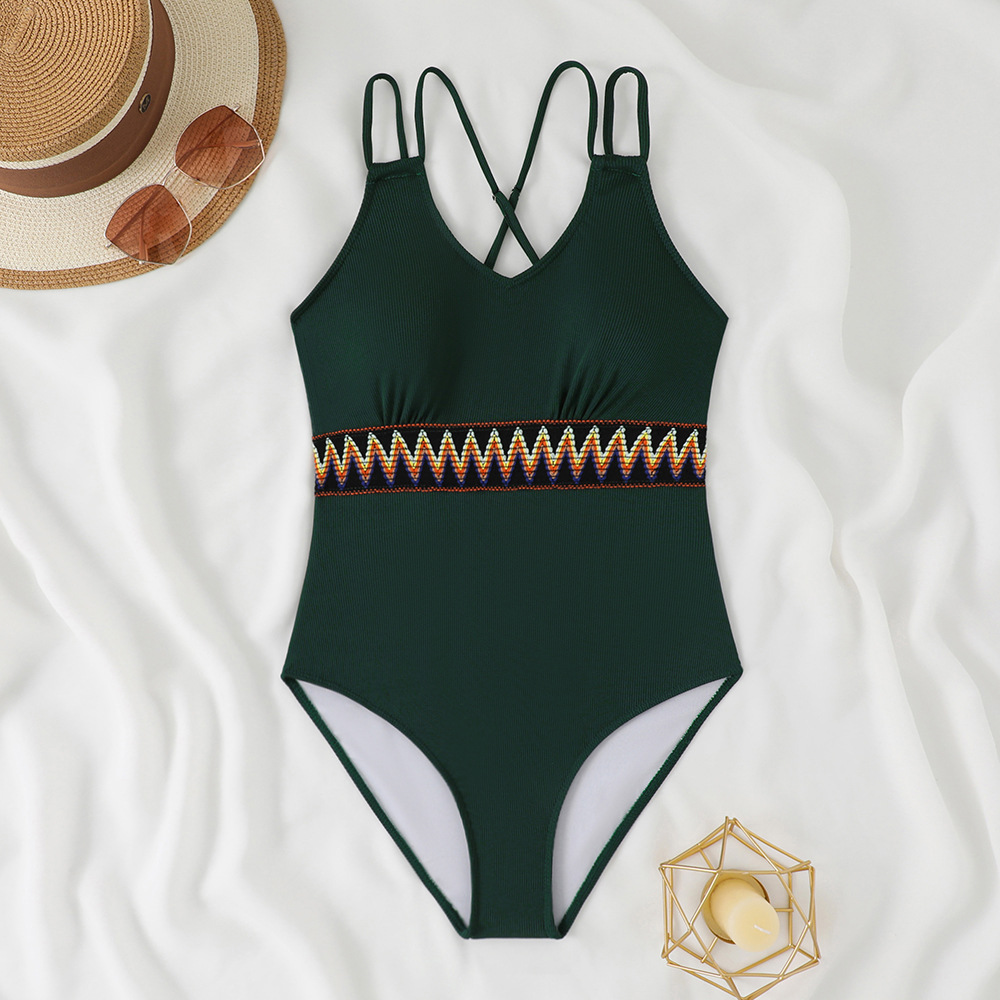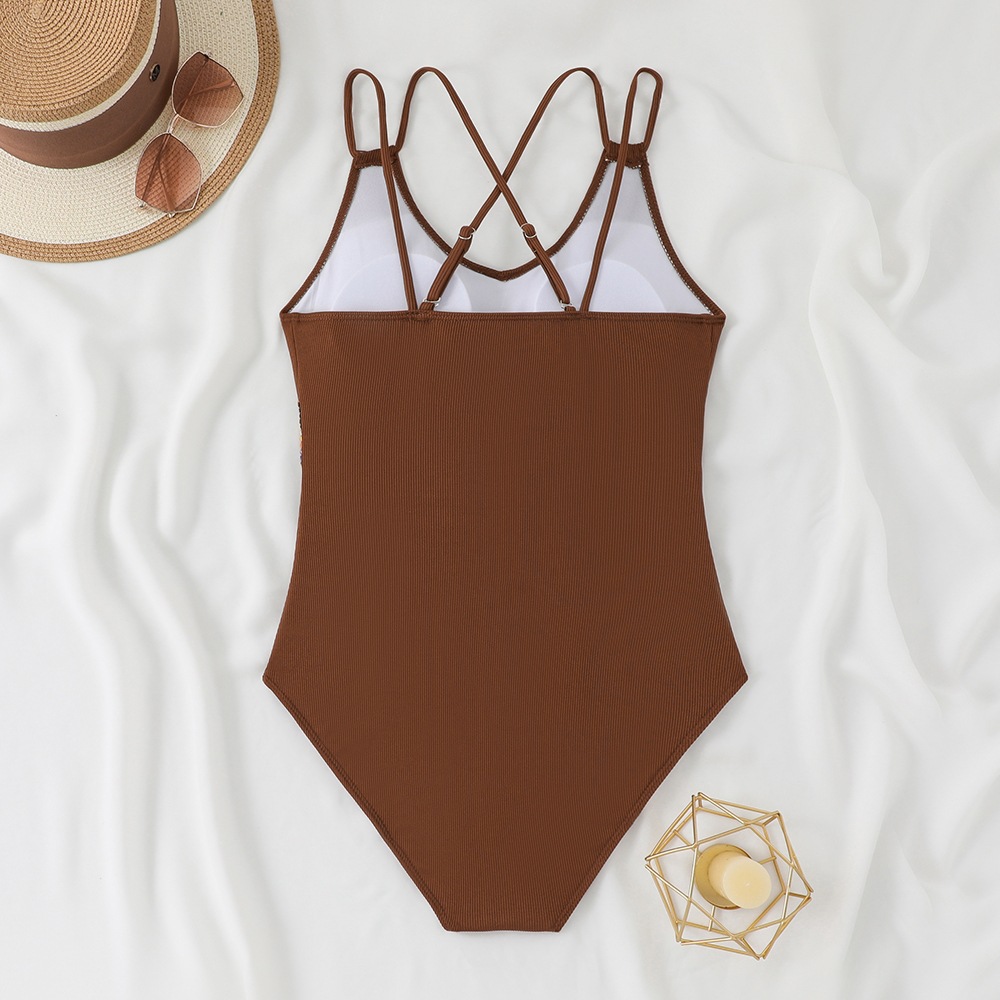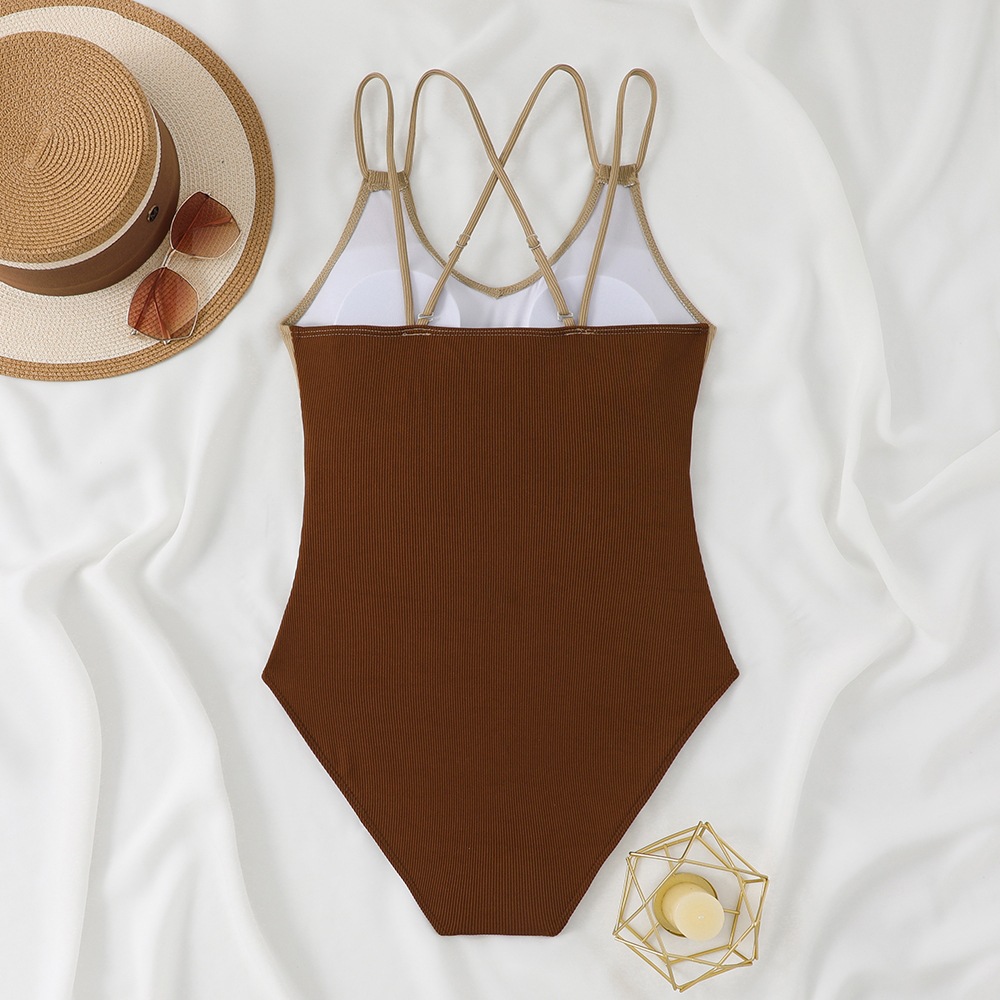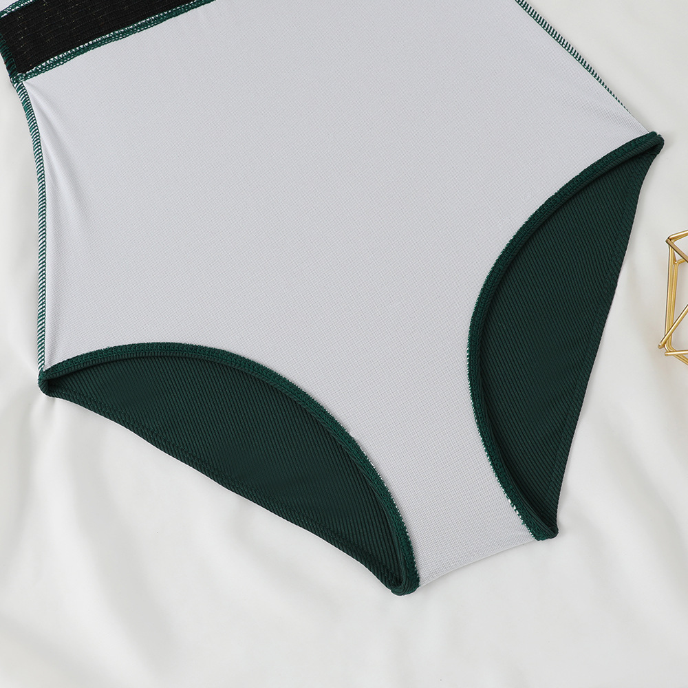 European And American One-piece Panel Stitching Rib Fabric Solid Color Women's Swimsuit