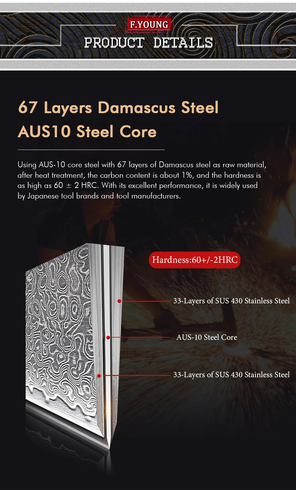 Blade Material: Carbon Steel,67 Layers Damascus Steel AUS-10