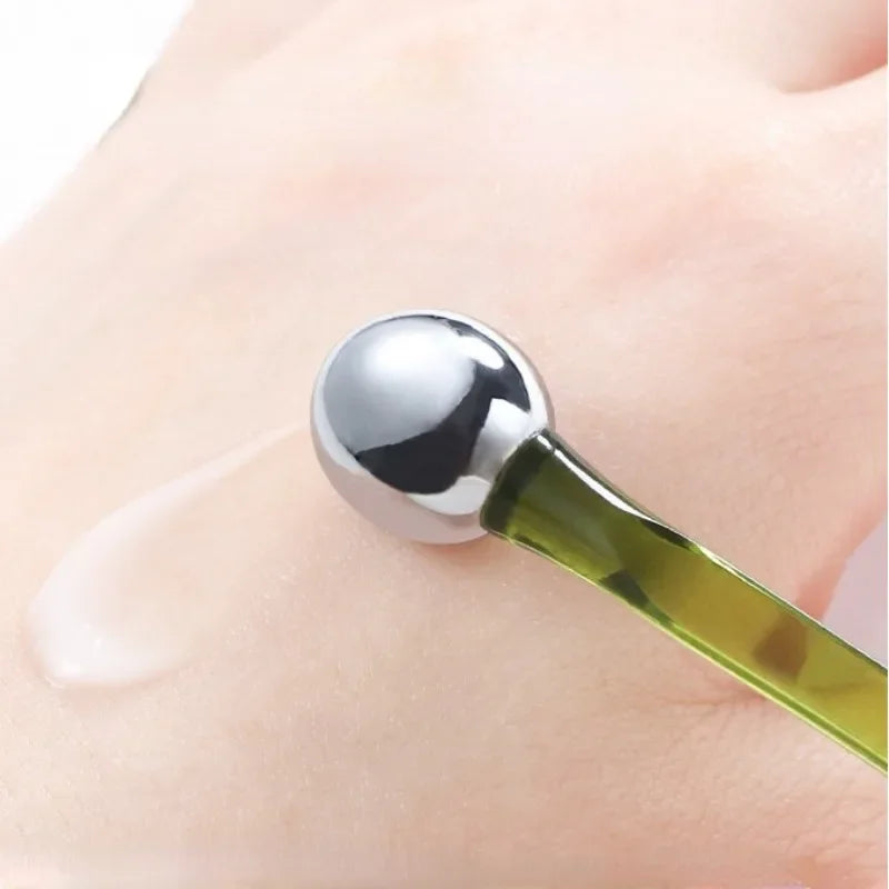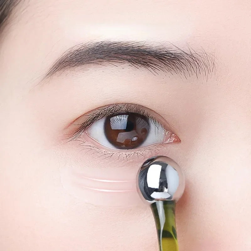 Face Lift Eye Massager Natural Jade Stone Steel Ball Beauty Tools Eye Cream Divided Scoop Massage Roller Silicone Makeup Stick