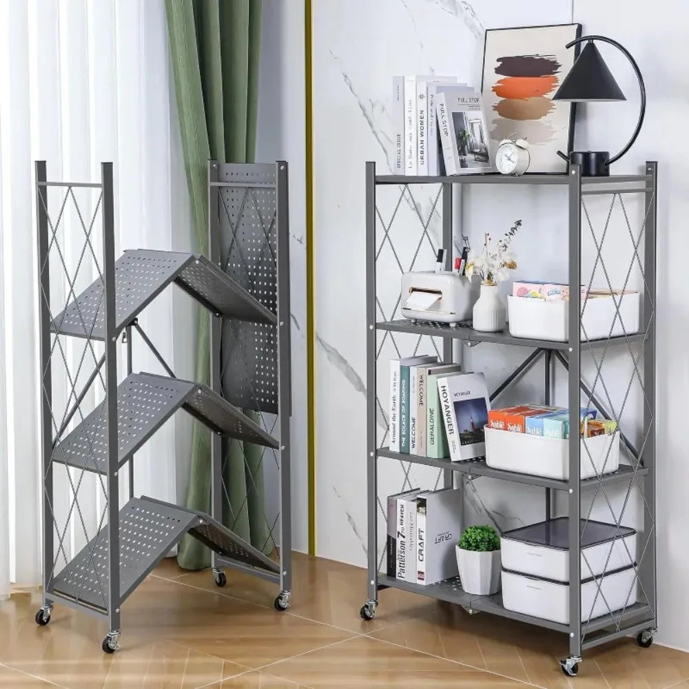 Foldable Metal Storage Rack Multifunctional Living Room Shelf Multilayer Installation Free Kitchen Organizer Trolley Bookshelf