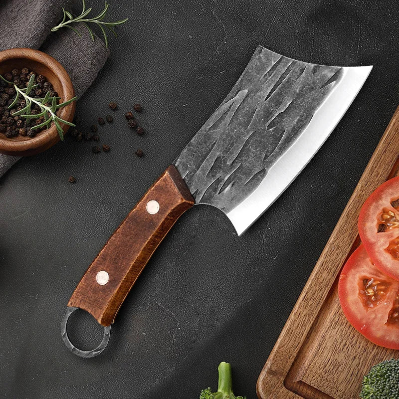 Hand-Forged Butcher Knife 4 inch Stainless Steel Slicing Fish Knife Wood Handle Kitchen Meat Cleaver Chef Chopping Cooking Knife