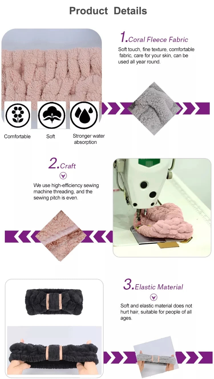 Headbands Spa Facial Headbands Makeup Headbands Elastic Terry Cloth Head Wrap for Women Washing Face Makeup Shower Yoga Sports