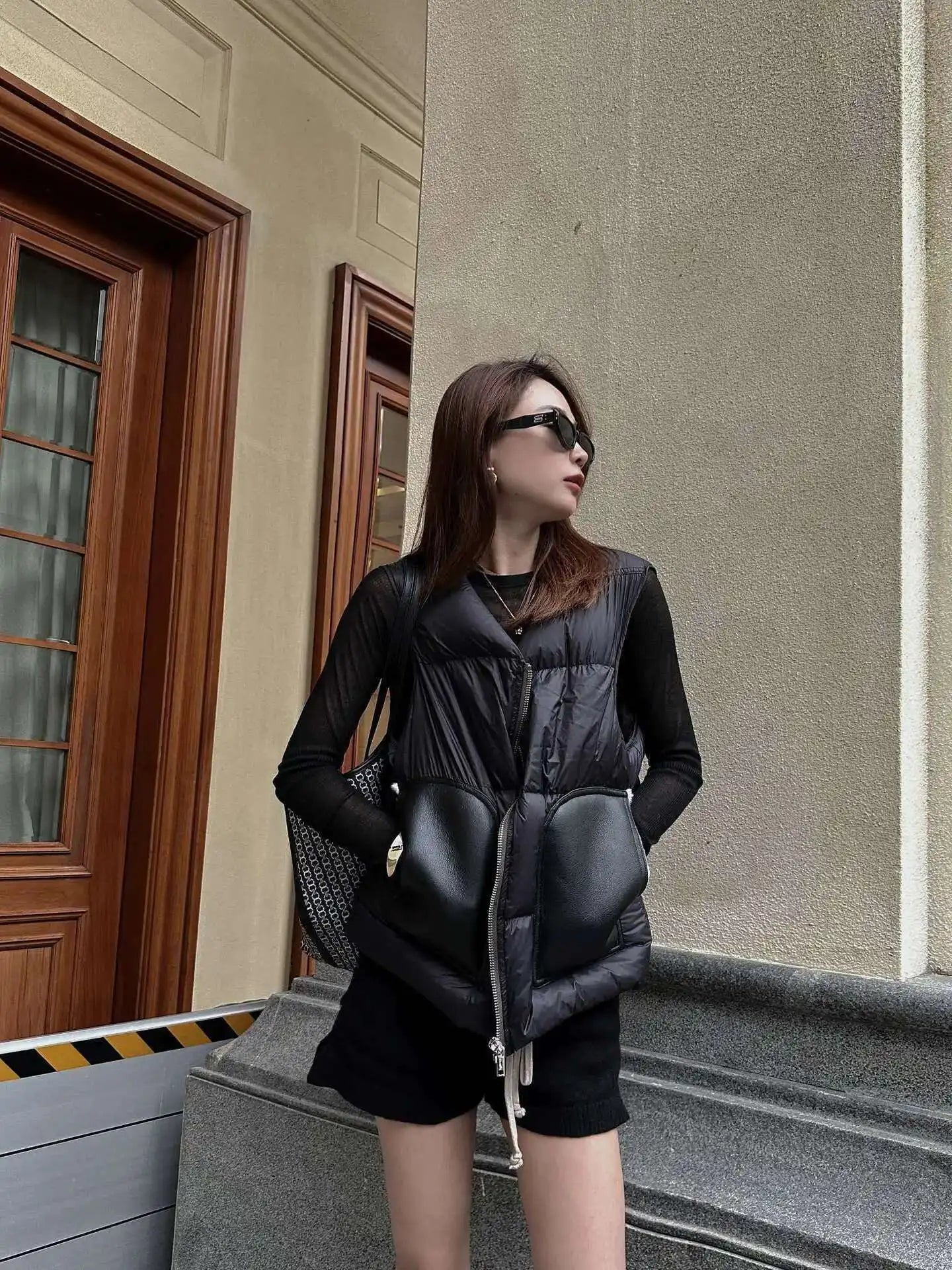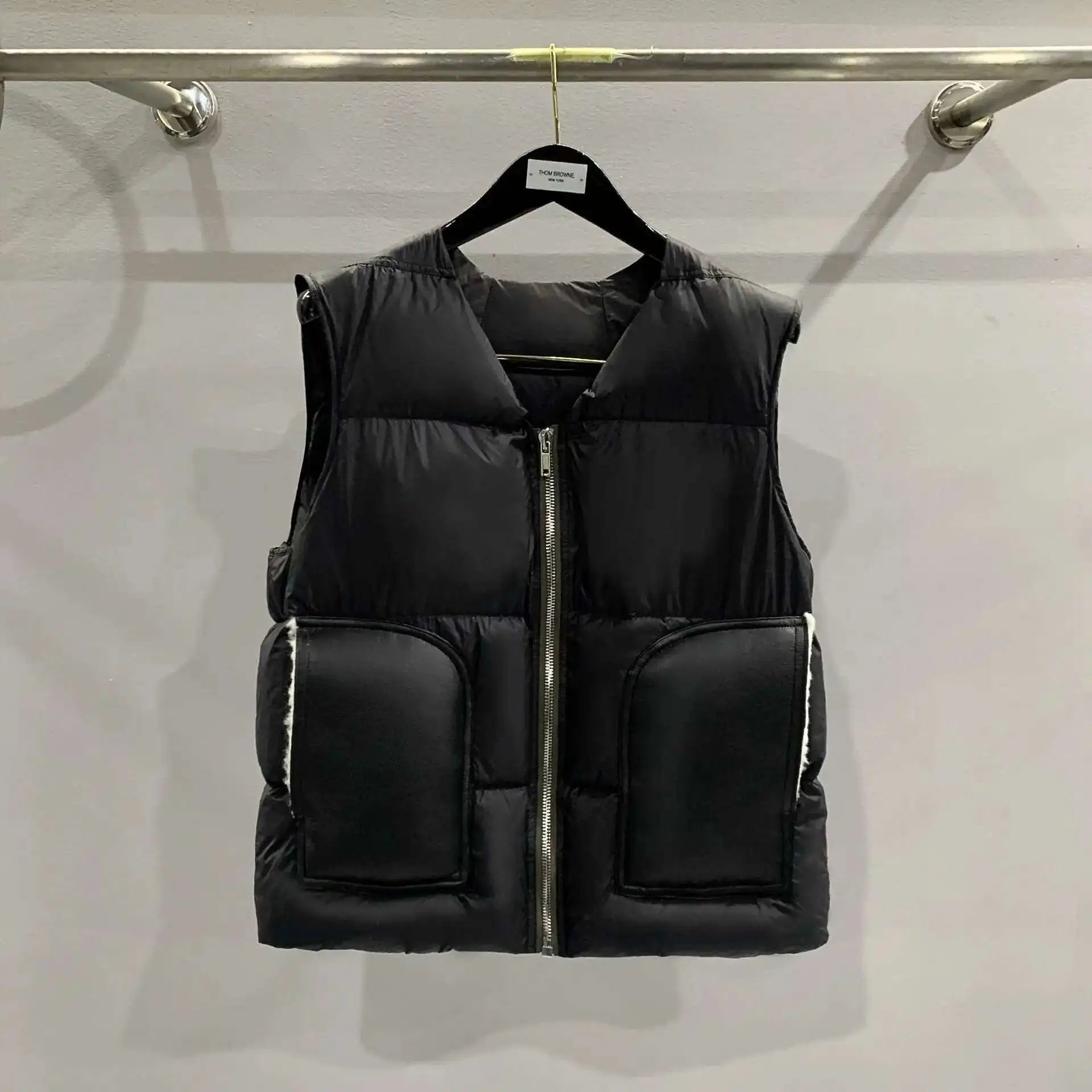 HKSH Autumn Winter Men's Tide Dark V-neck Cotton Jacket Women Splice Fur Patchwork Sleeveless Vest Zipper Chic Down Coats HK2466