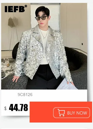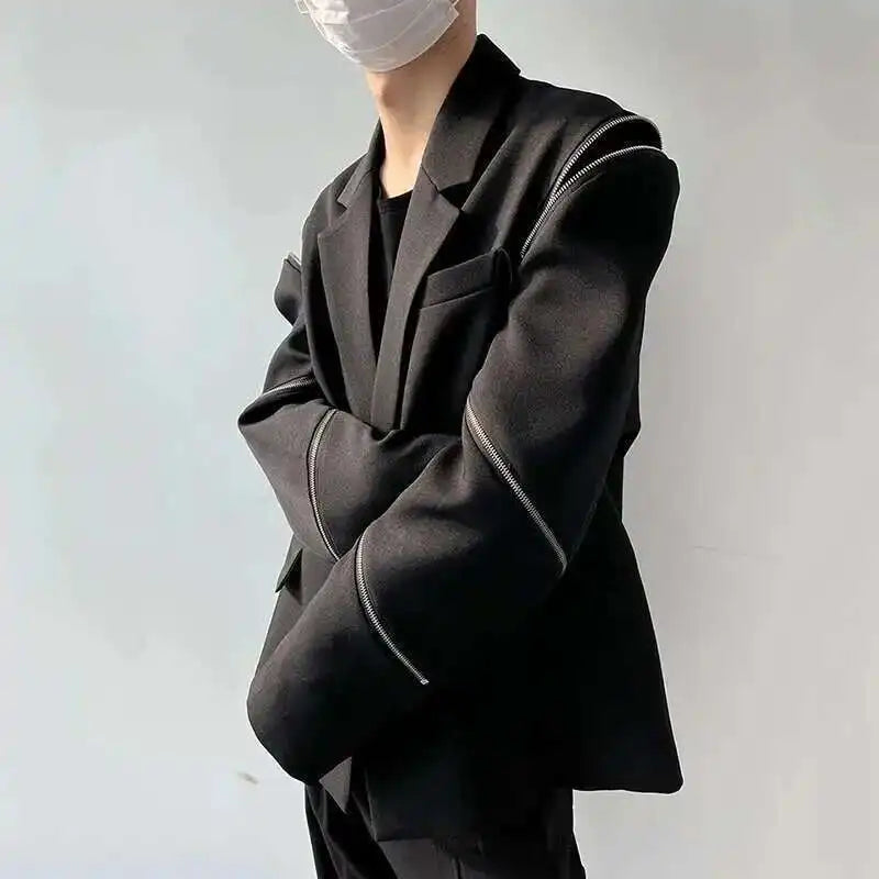 IEFB Zipper Men Suit Personalized Design Coat Casual 2023 Solid Color Long Sleeve Zipper Decoration Male Jacket Darkwear 9A5018