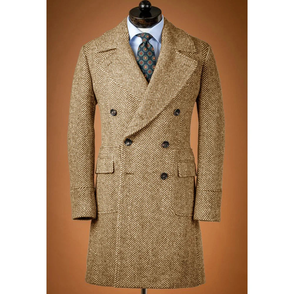 Jackets Man Men's Large Herringbone Woolen Coat Men's Autumn Clothes Comfortable and Commuting Wear Double-breasted Fashionable