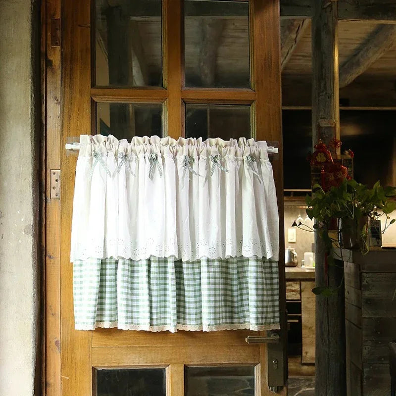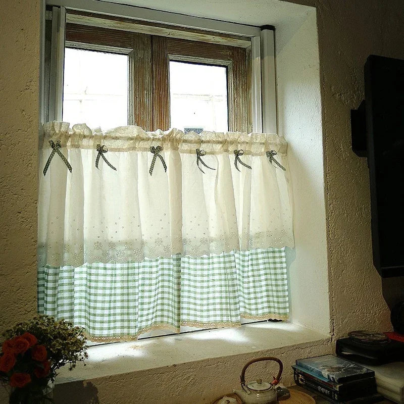 Kitchen Curtains for Window Half Doorway Curtain Japanese Lace Short Curtains Rod Pocket with Embroidery for Living Room Bedroom