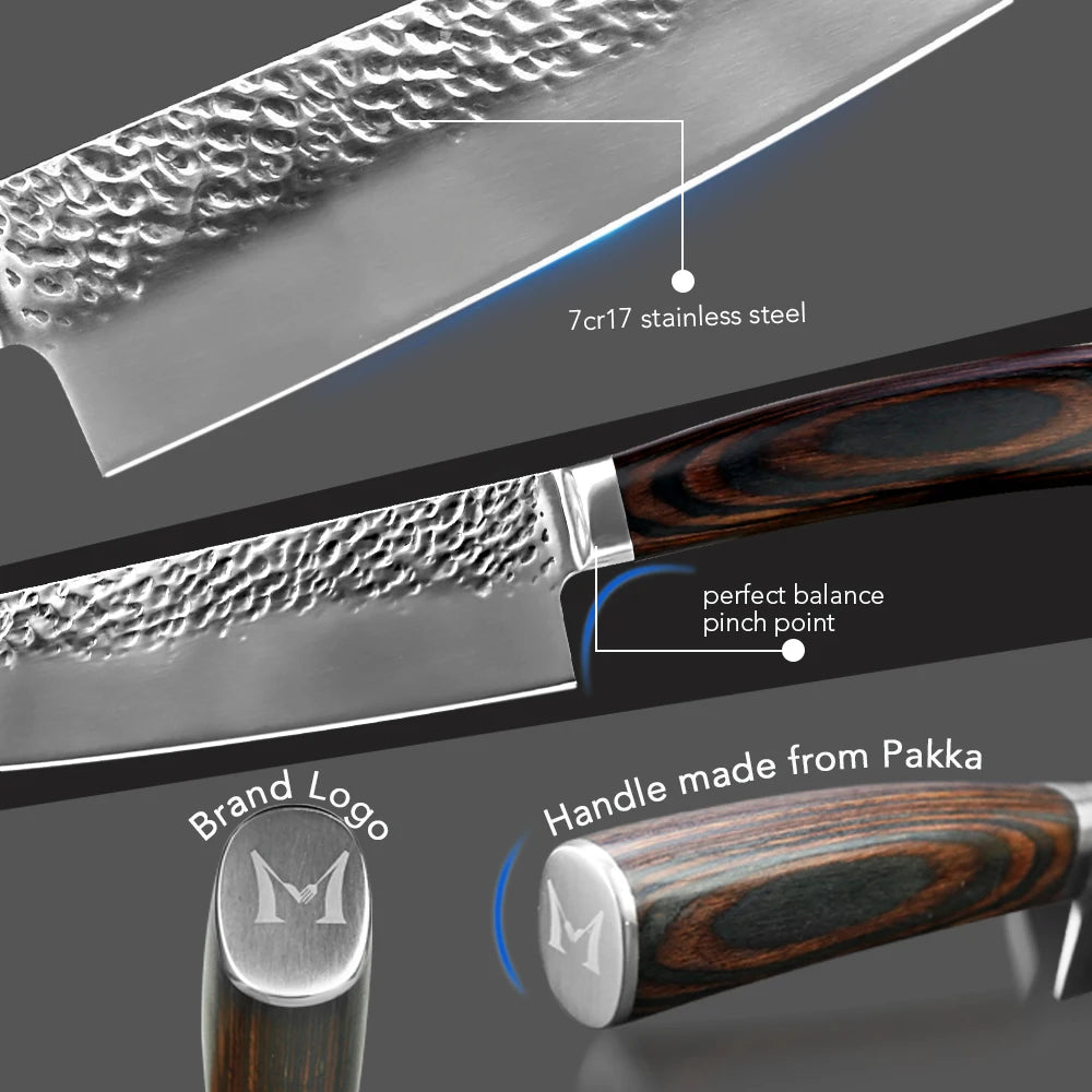 Kitchen Knives Japanese Chef Knife Set 7CR17 High Carbon Steel Full Tang Hammered Non-Stick Santoku Knifes Utility Meat Cleaver