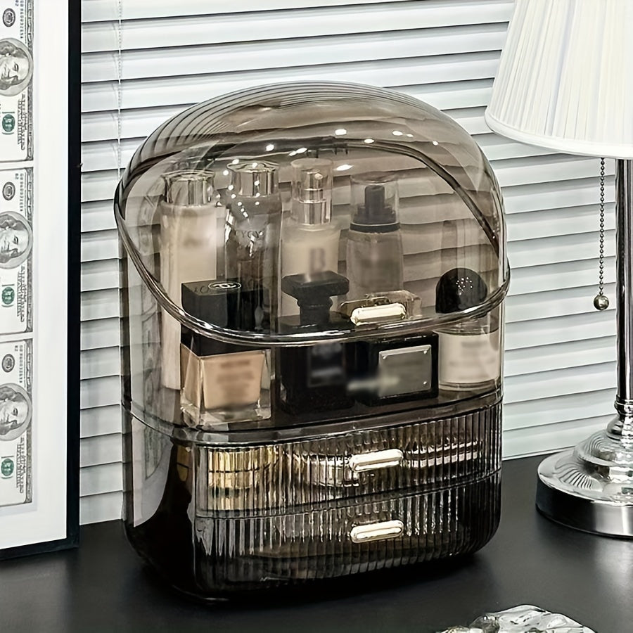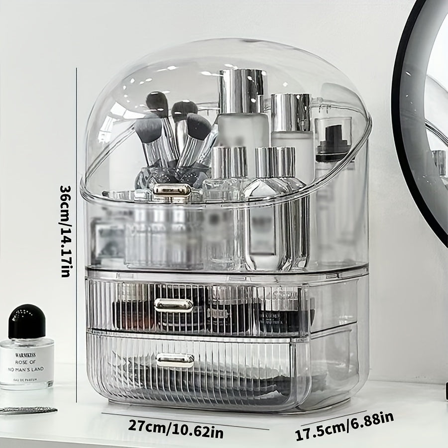 Large Acrylic Cosmetic Organizer - Dust-Proof Vanity Skincare Storage Box with Lid, Spacious Countertop Makeup Holder for Bathroom Essentials
