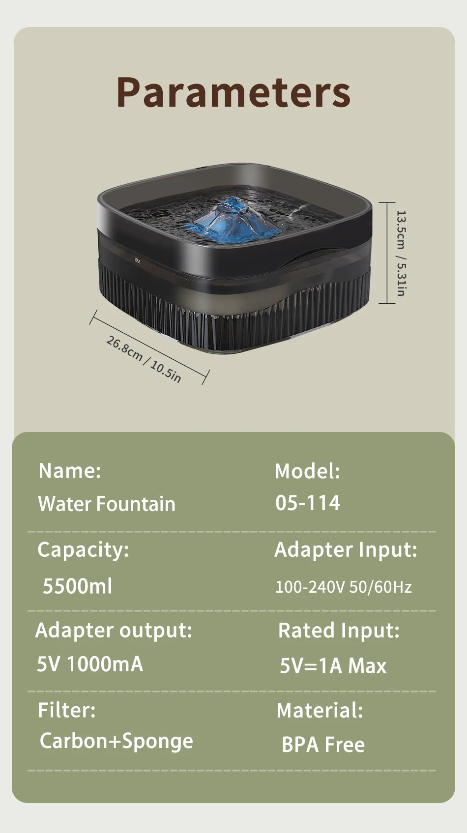 Large-Capacity Pet Water Fountain Large Dog Drinking Bowl with Ultra-Quiet Pump for Multiple Cats or Dogs Pet Drinking Dispenser