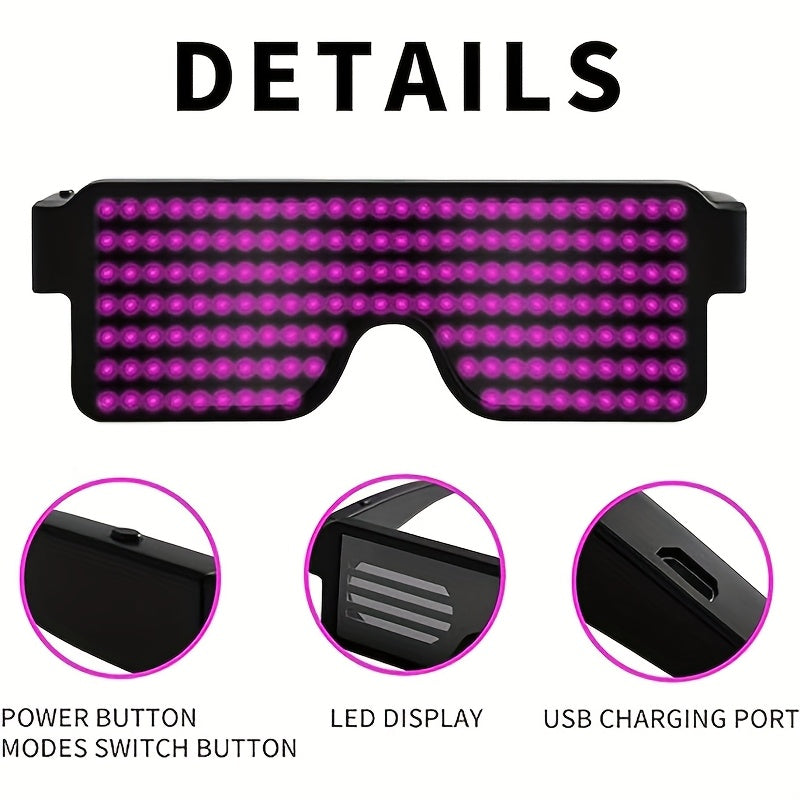 LED Light up Glasses, USB Rechargeable 11 Patterns Multi-Color Glow in the Dark Luminous Glasses for Halloween, Christmas, Costume Party, Music festival, Birthday Party