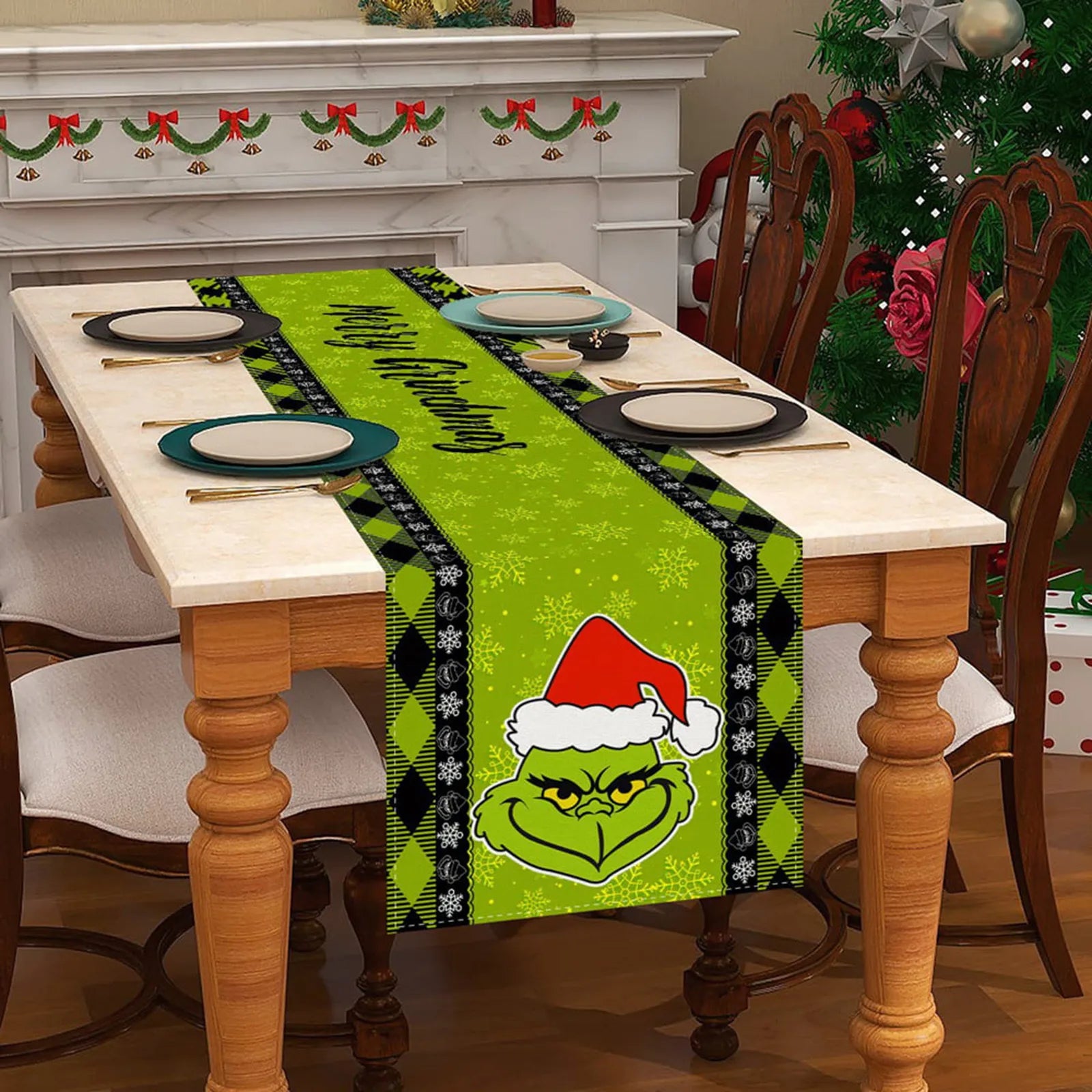 Linen Green Christmas Table Runner Tablecloth Christmas Xmas Winter Holiday Home Kitchen Dining Room Table Decoration 13x72 Inch