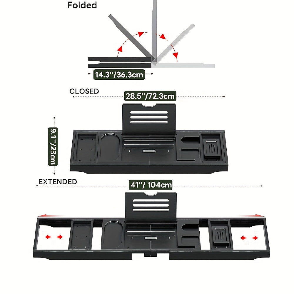 Luxury Expandable Bathtub Caddy Tray with Book Holder, Soap Dish & Accessories - Foldable Bamboo Bath Table for Tub, Perfect for Relaxing Spa Days, Black