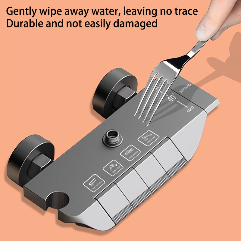 Luxury Space Aluminum Shower System with Dual-Function Handheld and Rainfall Shower Head, Wall-Mounted, Square Design, Brushed Finish - Includes Adjustable Temperature Control and Multi-Hook Rack for Bathroom Upgrade, Shower Accessories, Sleek