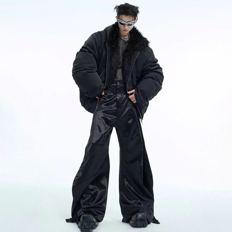 LUZHEN Winter Hooded Cotton Coat Casual Solid Color Faux Fur Patchwork Design Personalized Warm Short Baseball Jacket Men LZ7041