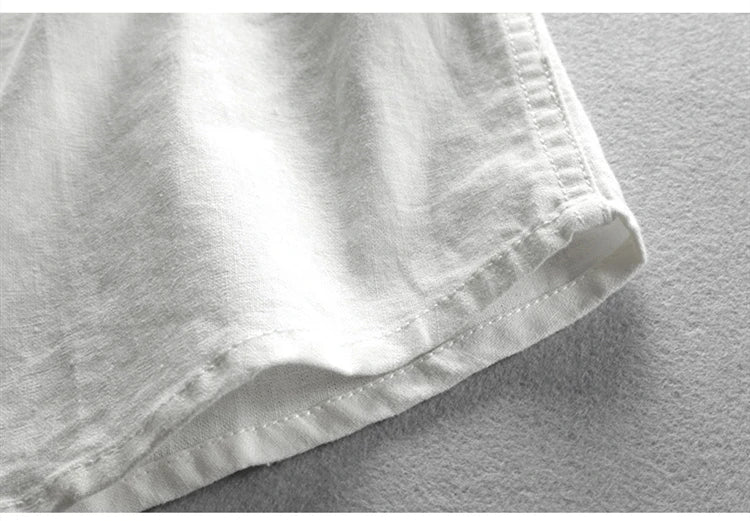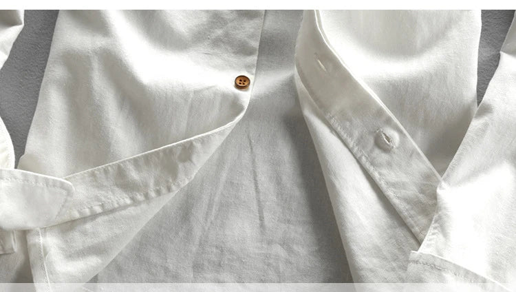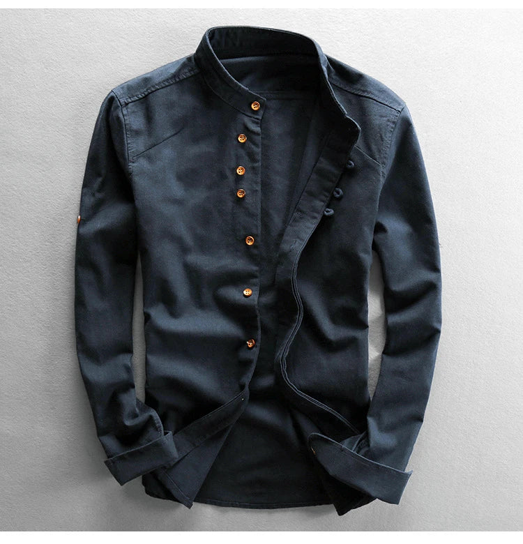 Men Spring Autumn Japan Vintage Style Cotton Linen Shirts Stand Collar Slim Fit Single Breasted Simple Design Soft Casual Shirt