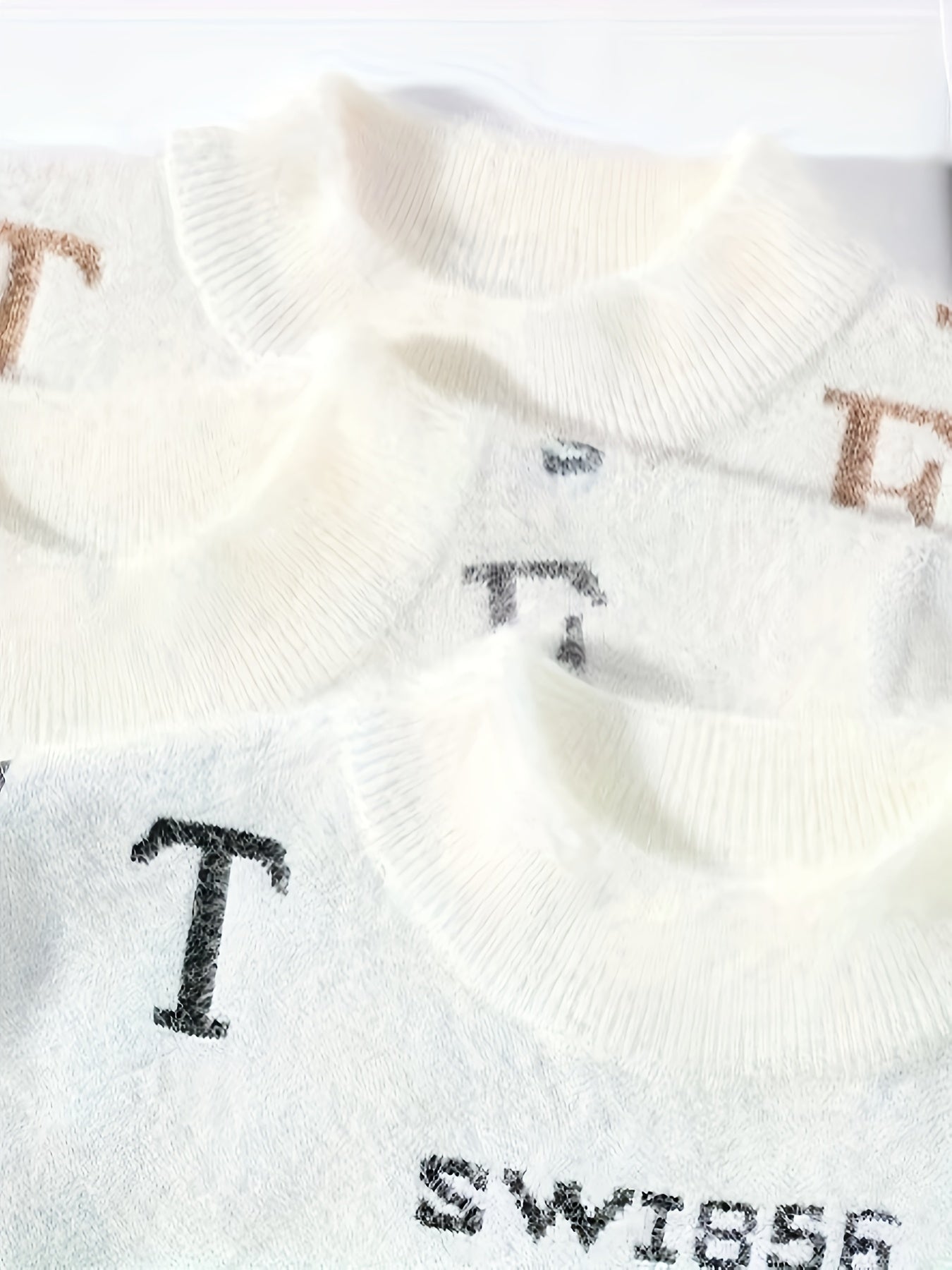 Men'S Cozy Winter Sweater - Soft Fleece-Lined Pullover with Gradient Letter Print, Non-Slip Knit Top for Casual Outings & Casual Attire, Sweater Vest, Thick