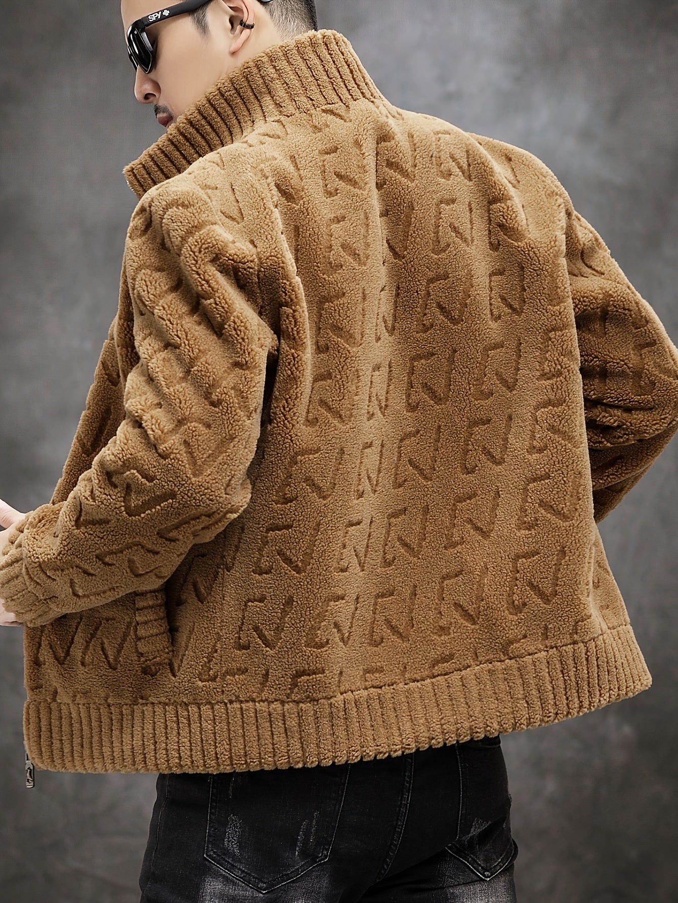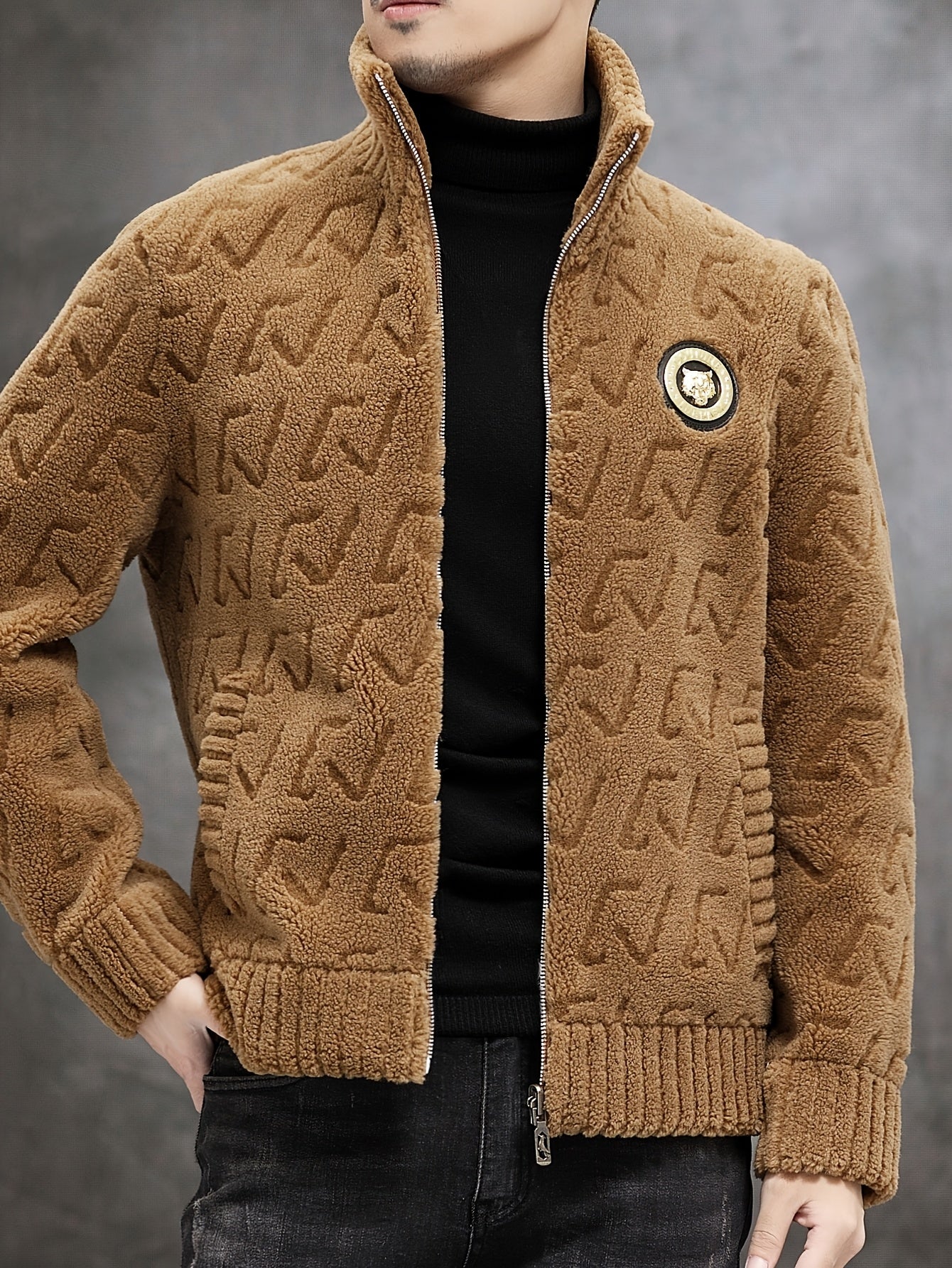 Men's Faux Fur-Lined Jacket - Casual Business Style, Warm Slim Fit, Full-Zip with Stand Collar and Ribbed Cuffs for Fall/Winter, Autumn Outerwear | Stand Collar Jacket | Golden Button Detailing
