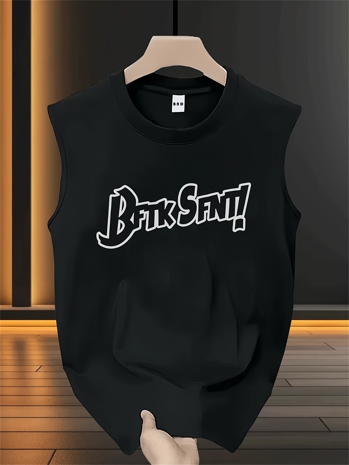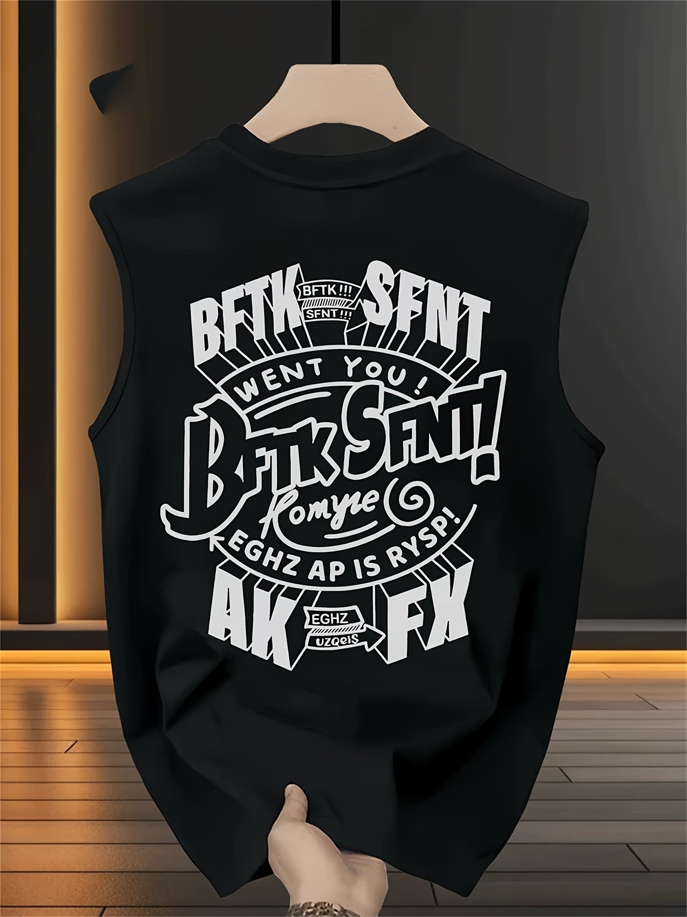 Men's Heavyweight 200gsm Cotton Sleeveless T-Shirt - Black with White Graphic Tech Typography Back Print - Loose Fit Tank Top for Everyday & Special Occasions - Machine Washable Summer Shirt for Men