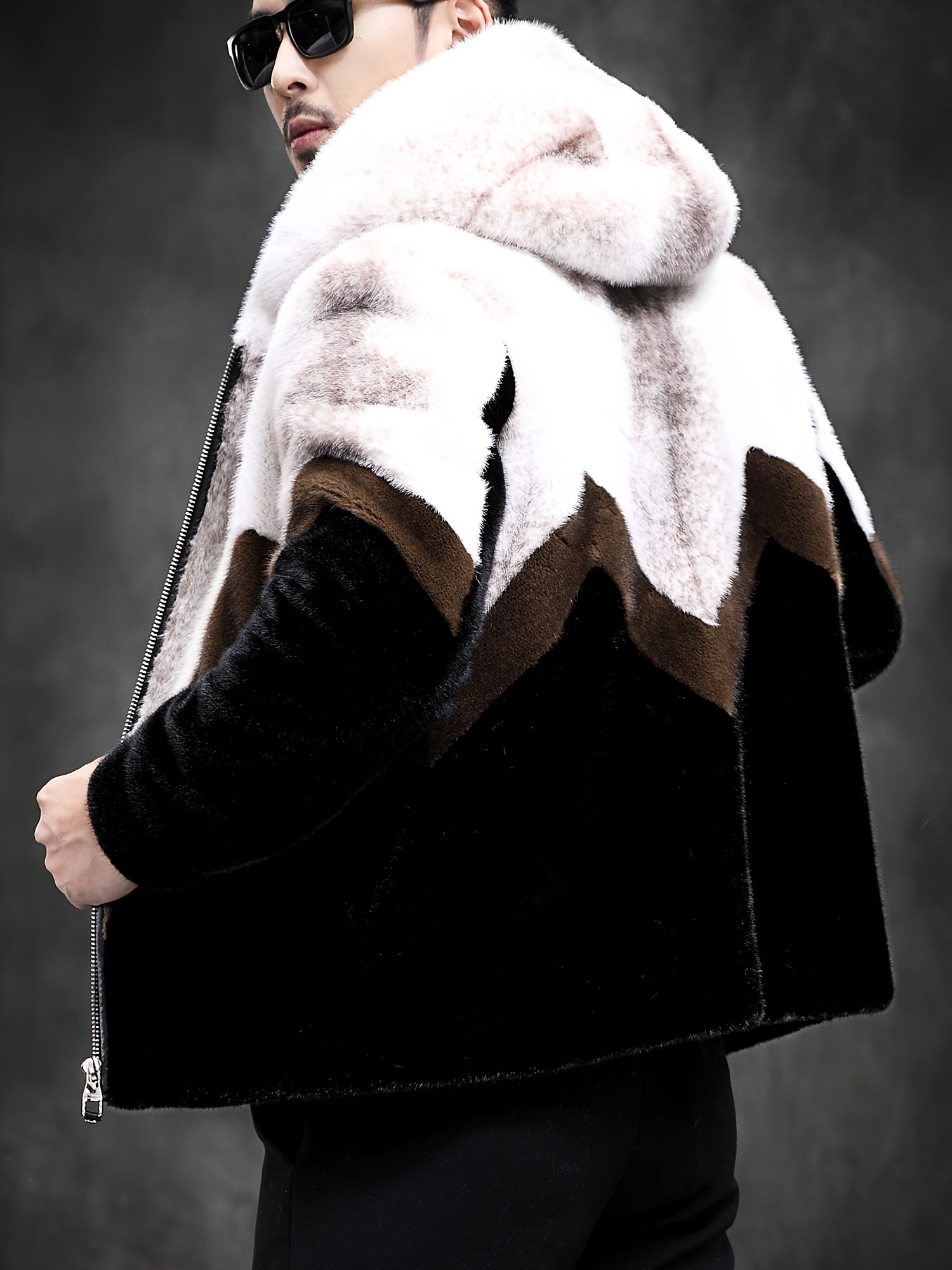 Men's Luxurious Faux Mink Hooded Jacket - Warm, Casual Winter Coat with Zip Closure for Outdoor Activities
