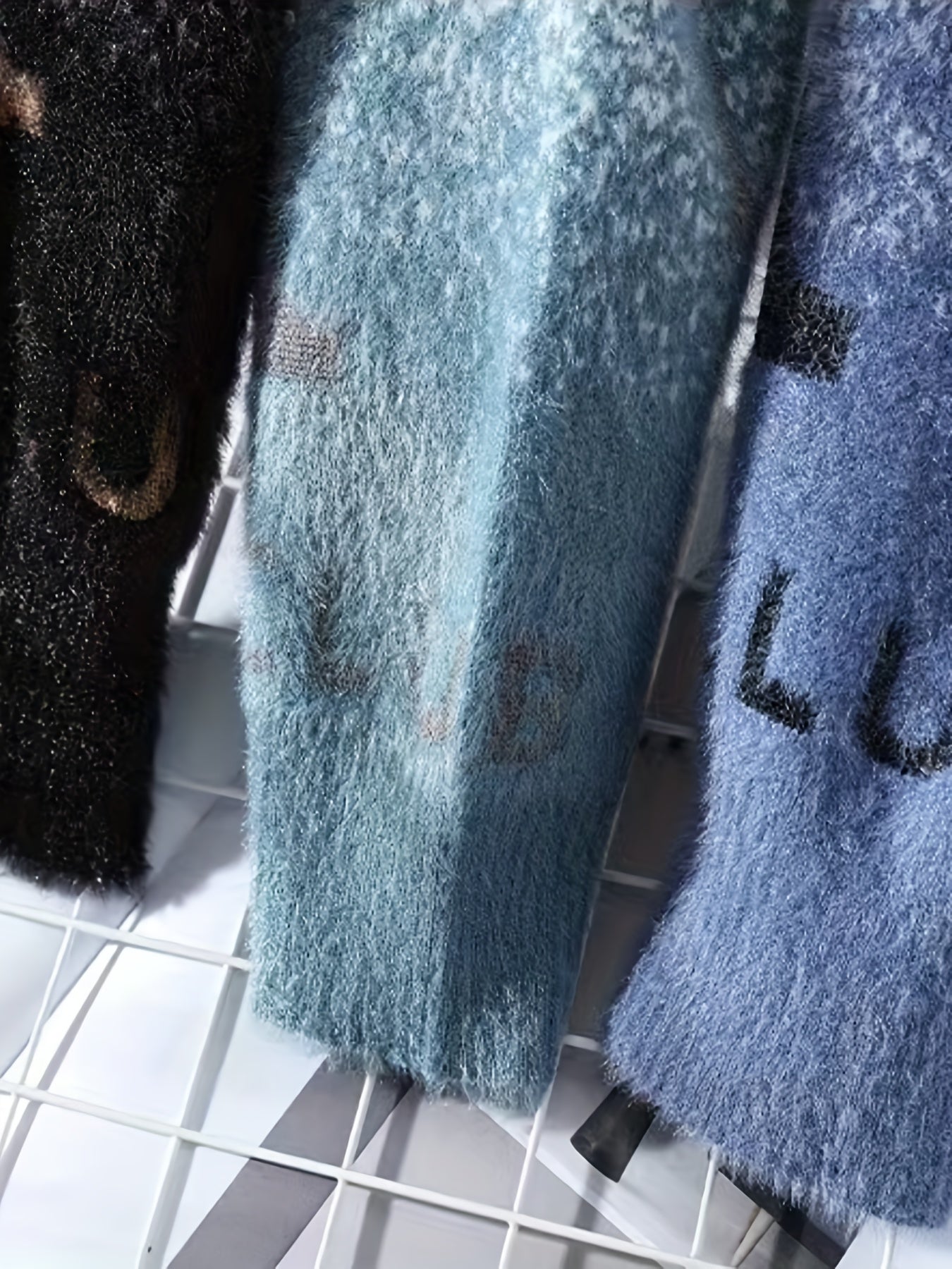 Men's Warm Sweater, Nylon Double-Needle Fleece, Soft Knit Pullover, Gradient Letter Print, Regular Fit, Long Sleeve, Round Neck, Polyester Lining, Ribbed Cuffs, Casual Daily Wear